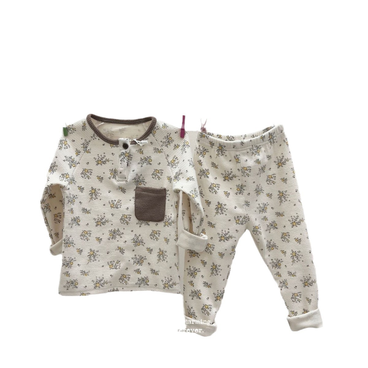 X25012秋季新款韩版儿童家居服 男女童a类坑条睡衣睡裤保暖两件套