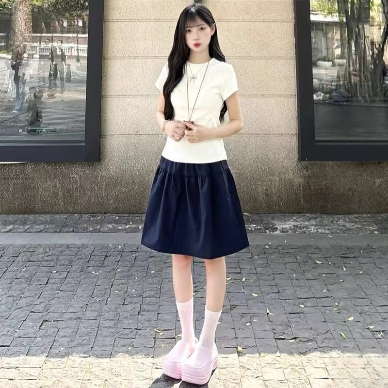 藏青色日系短裙女夏2025新款高腰显瘦a字休闲小个子学院风半身裙