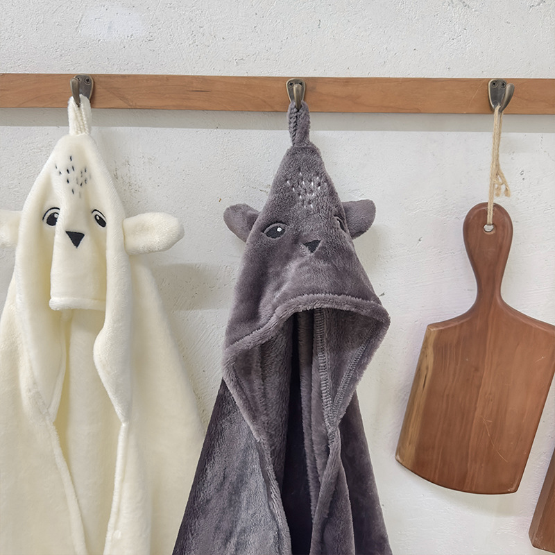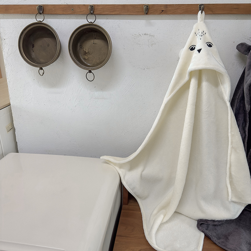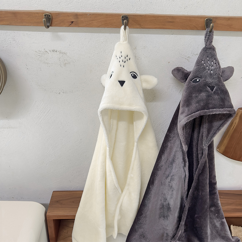 x25022里南希24年春季新款韩版儿童双面绒连帽浴巾柔软卡通刺绣
