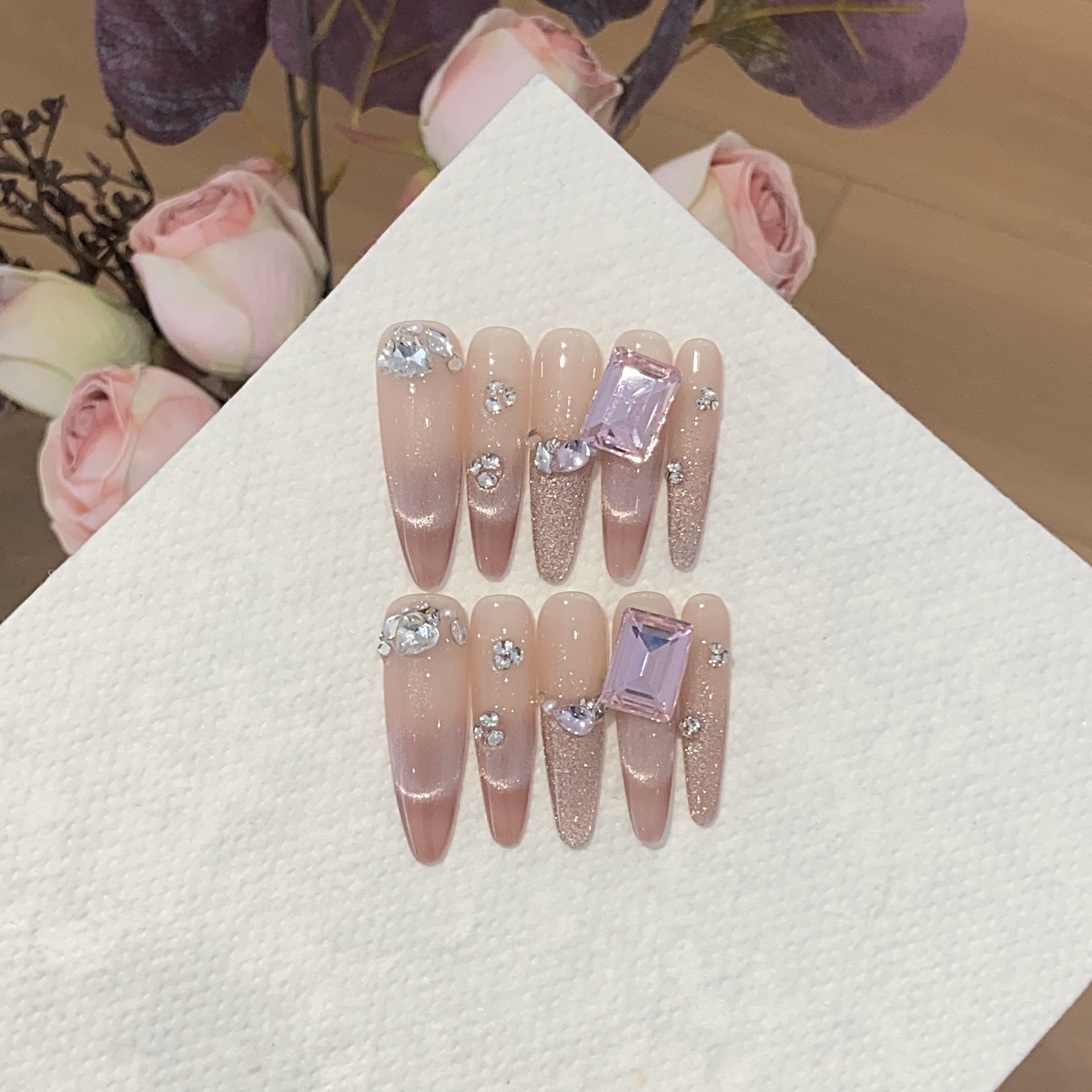 一只顾美甲 【Y】纯欲甜美粉色渐变微笑法式猫眼大方钻桃野情话穿
