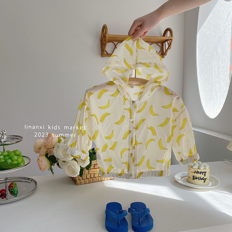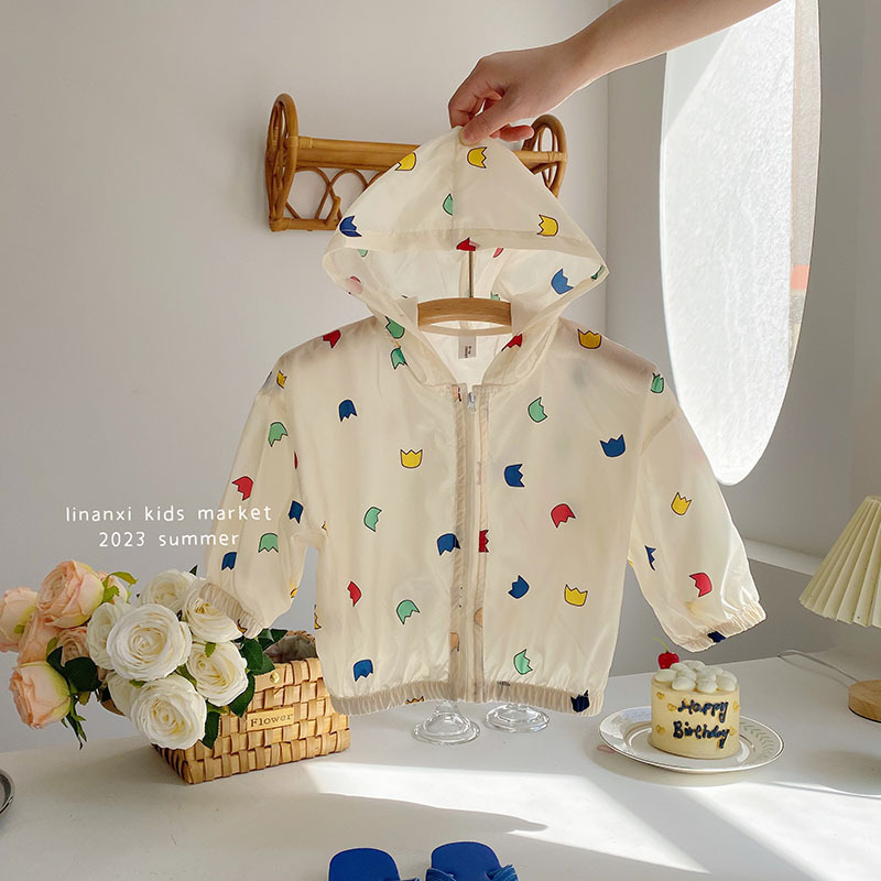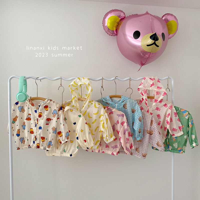 23390里南希24夏季新款 男女宝宝连帽防晒衣防紫外线卡通印花外套