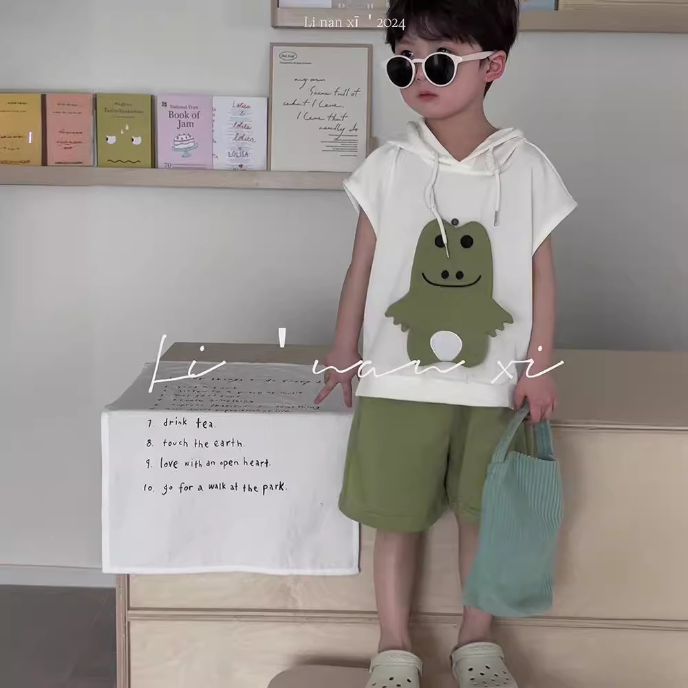 24夏新款男童套装韩版休闲两件套3-8岁男女宝宝纯棉卡通套装
