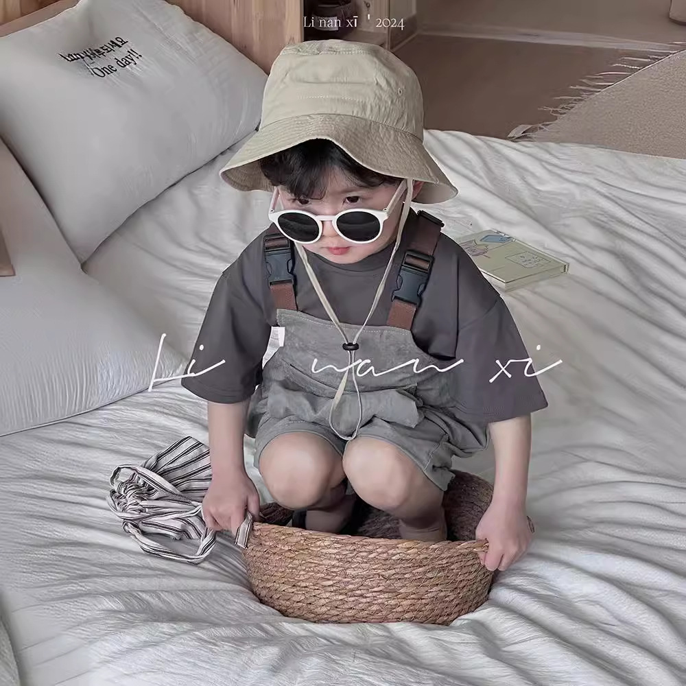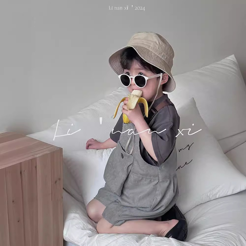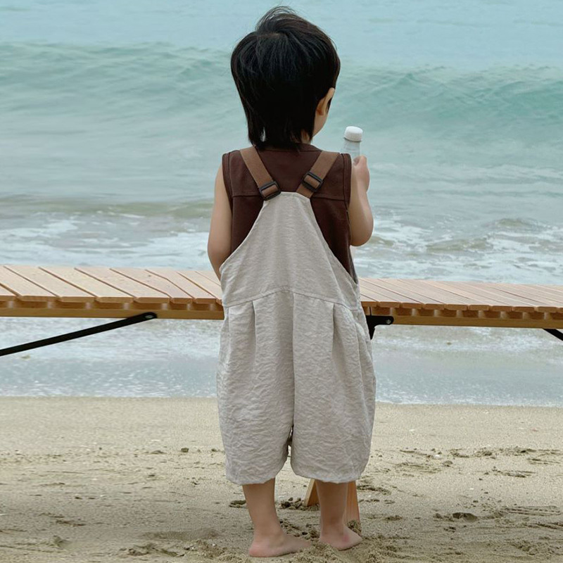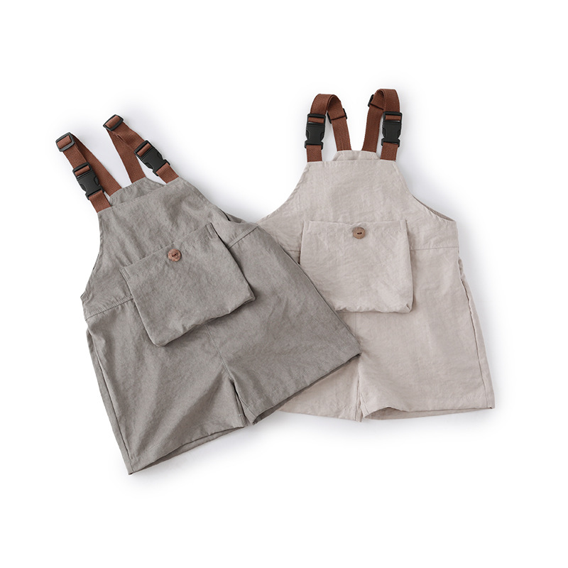 24夏季新品童中裤3-8岁男女童背带裤前后2面穿宽腿裤宝宝连体裤
