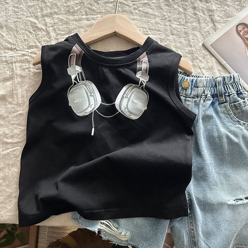 男女童夏装背心T恤宝宝洋气儿童个性印花潮牌外贸INS时髦网红上衣