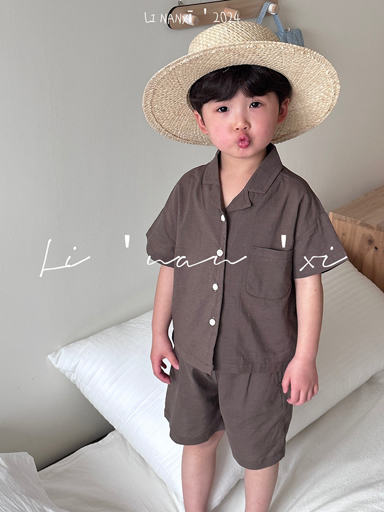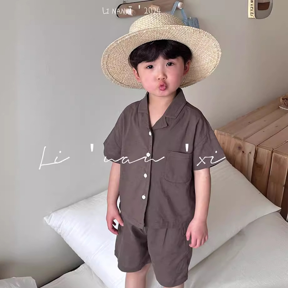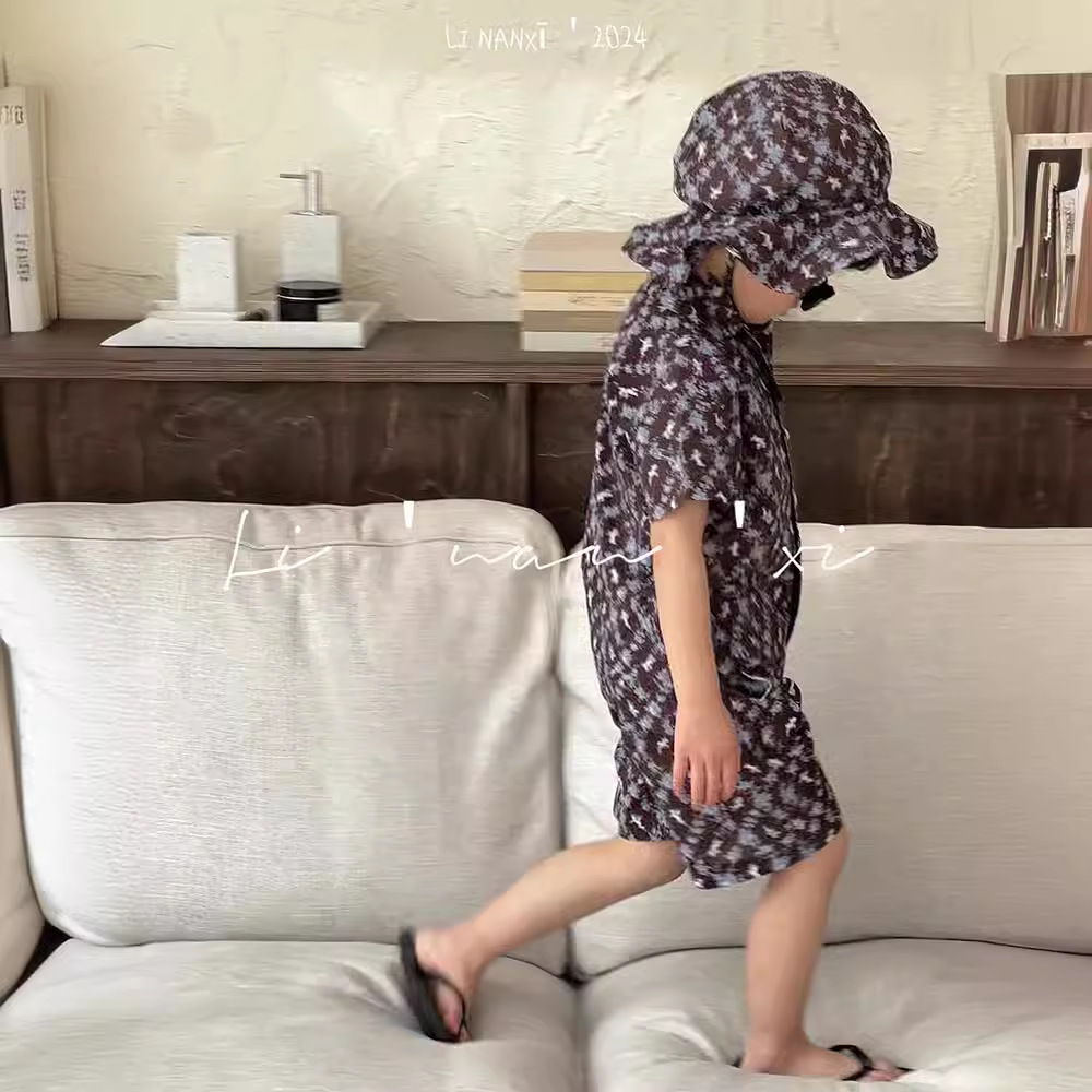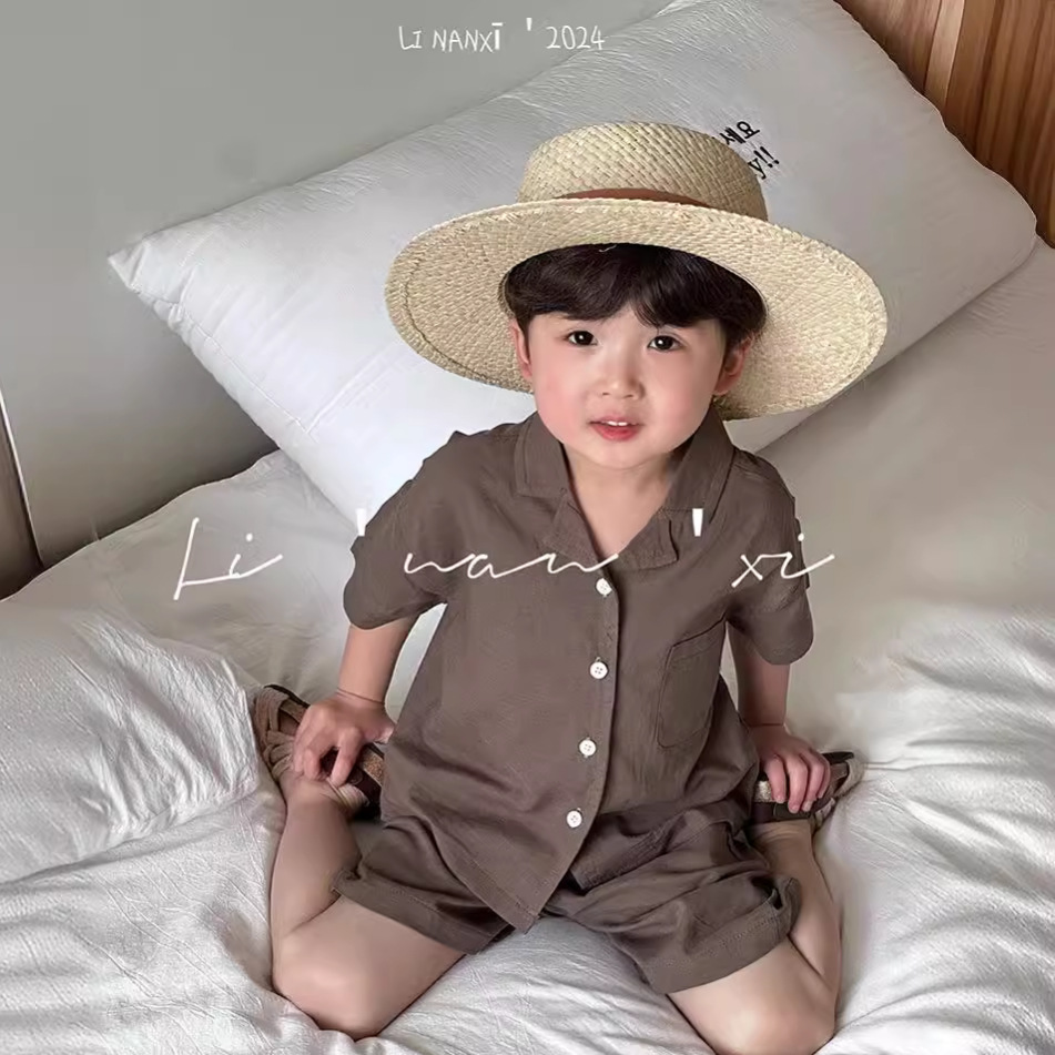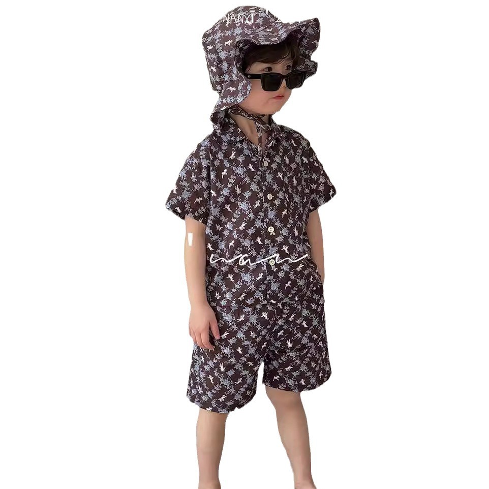 男童套装24夏新款男女童数码印花两件套宝宝休闲短袖西装套