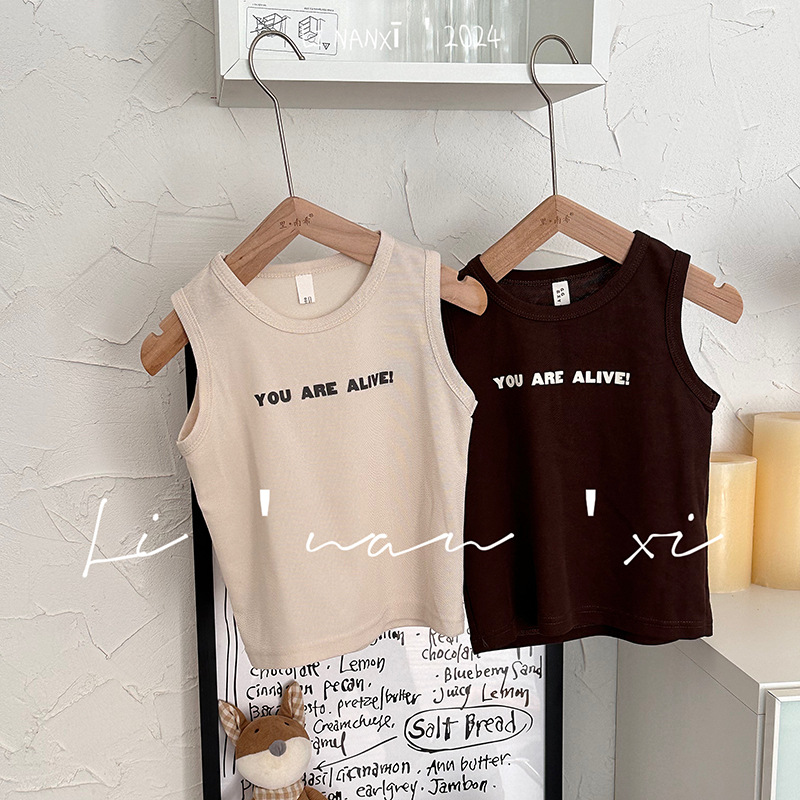 儿童背心24夏新品男女童3-8岁宝宝中小童针织珠地无袖T百搭内衬