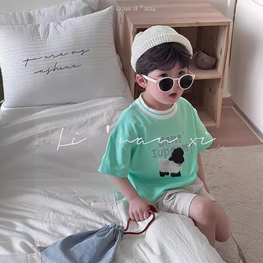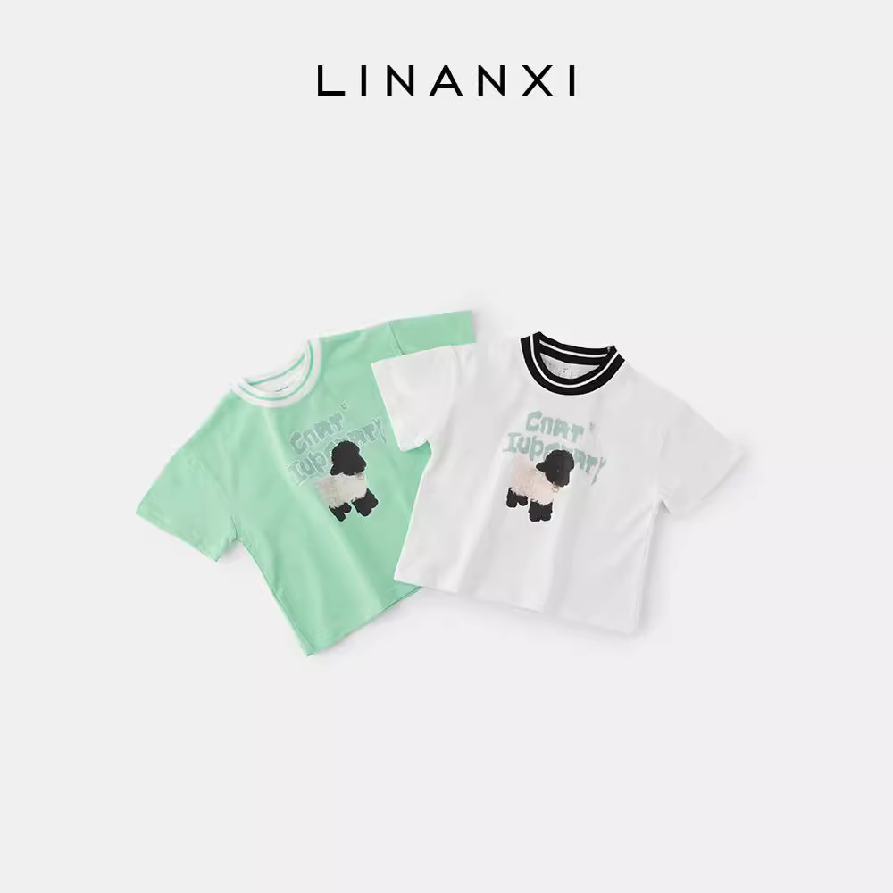 24年夏季新款儿童T恤男女童短袖T宝宝圆领衫短袖针织上衣数码印花