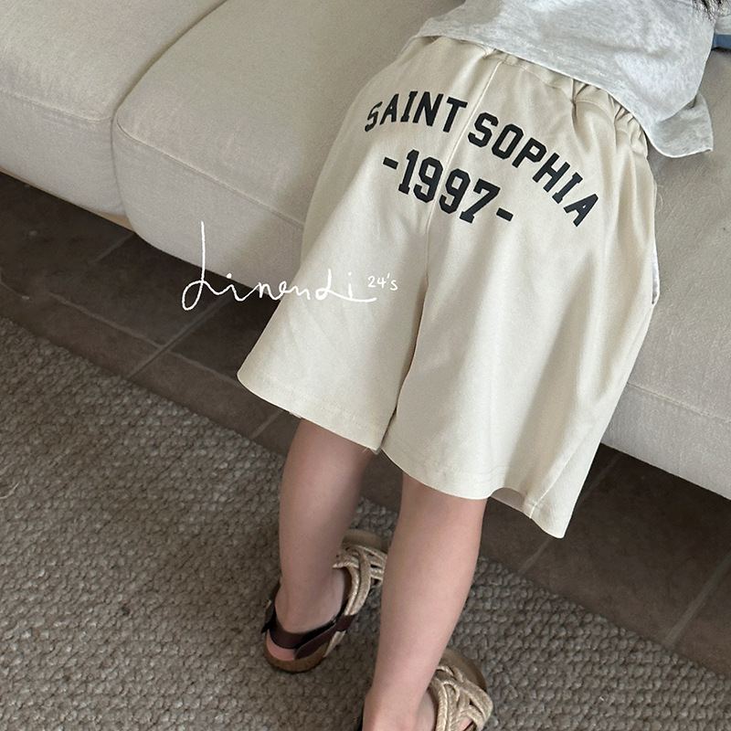 儿童短裤24年夏新品男女童字母印花针织休闲中裤宝宝百搭五分裤