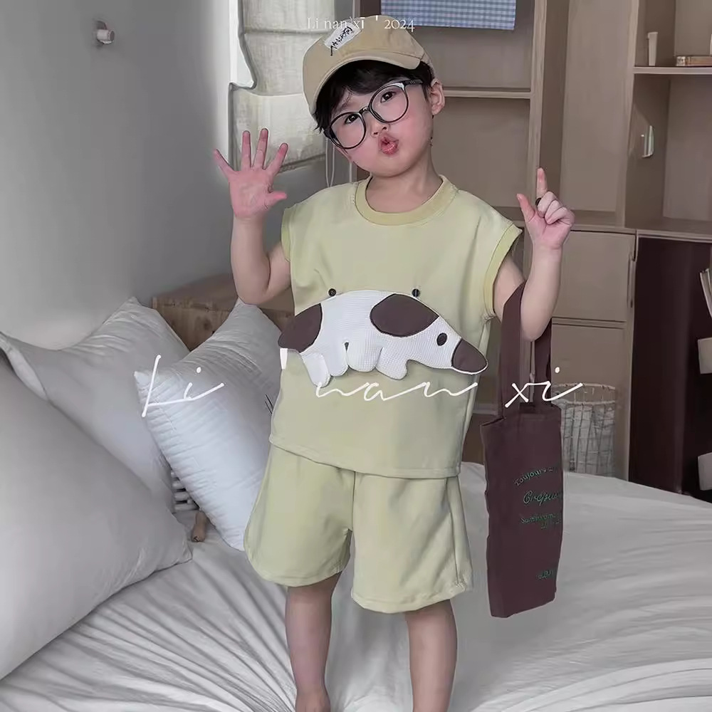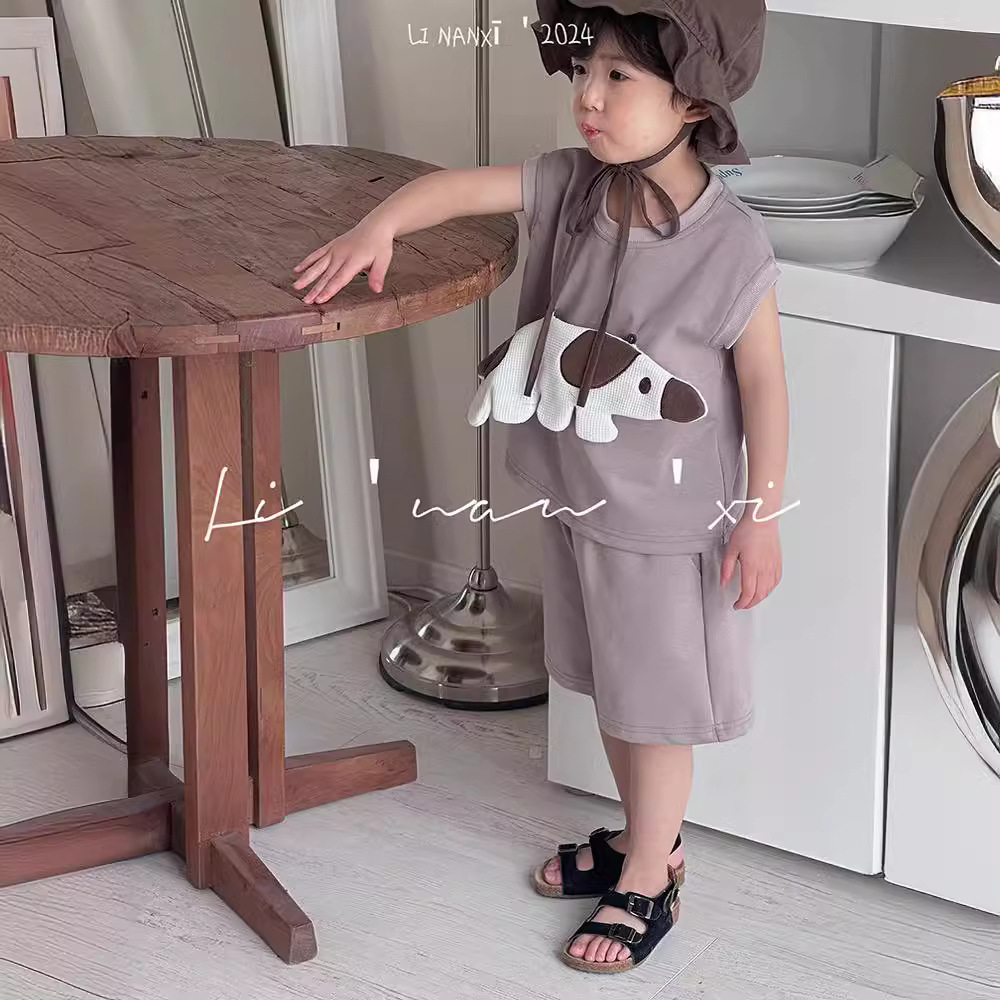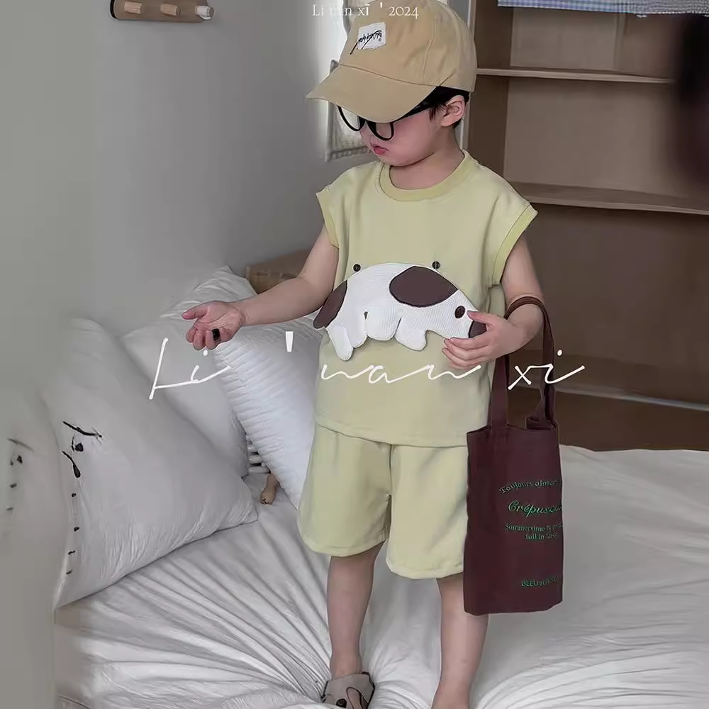 24年夏新款男童套装儿童两件套3-8岁宝宝短袖短裤可爱玩偶套装