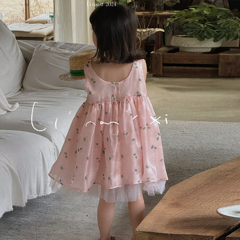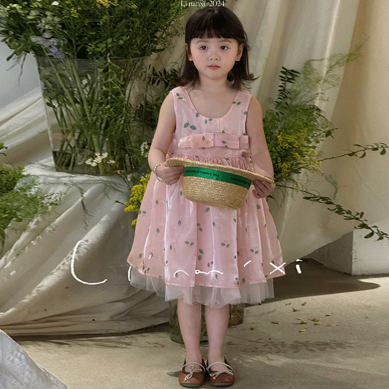 24夏款新品女童连衣裙韩版公主风印花3-8岁女宝宝纱裙