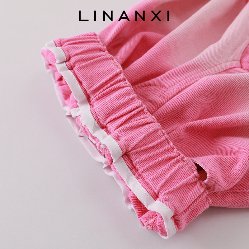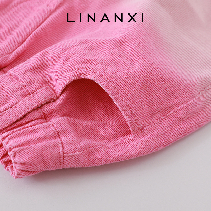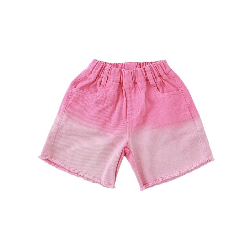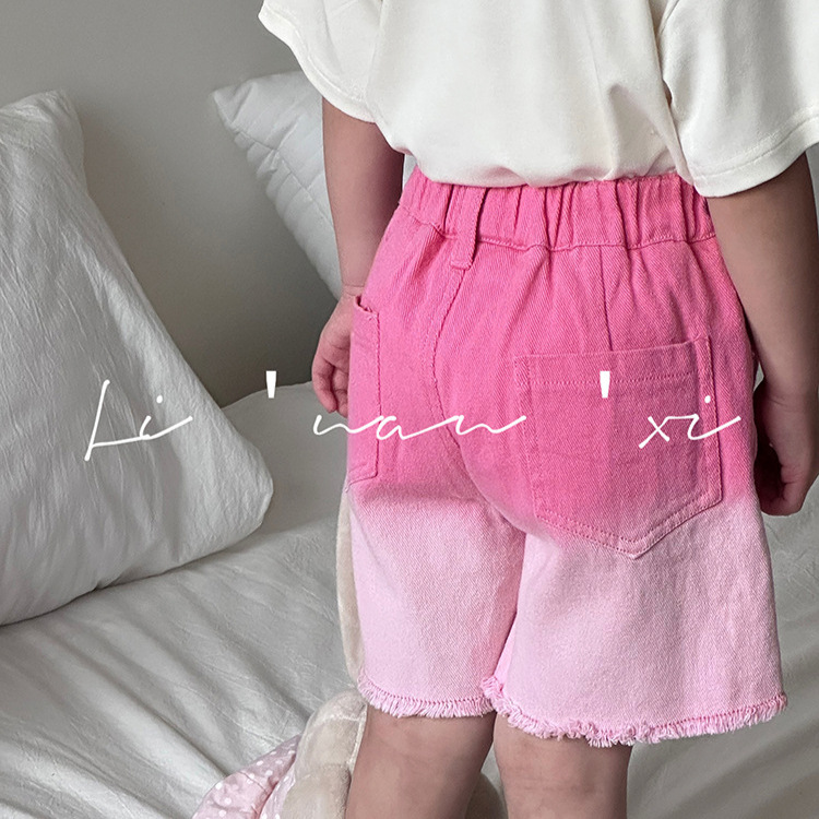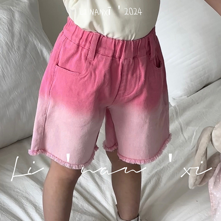 儿童短裤24夏新款男女童渐变粉色牛仔五分裤宝宝百搭软牛仔中裤