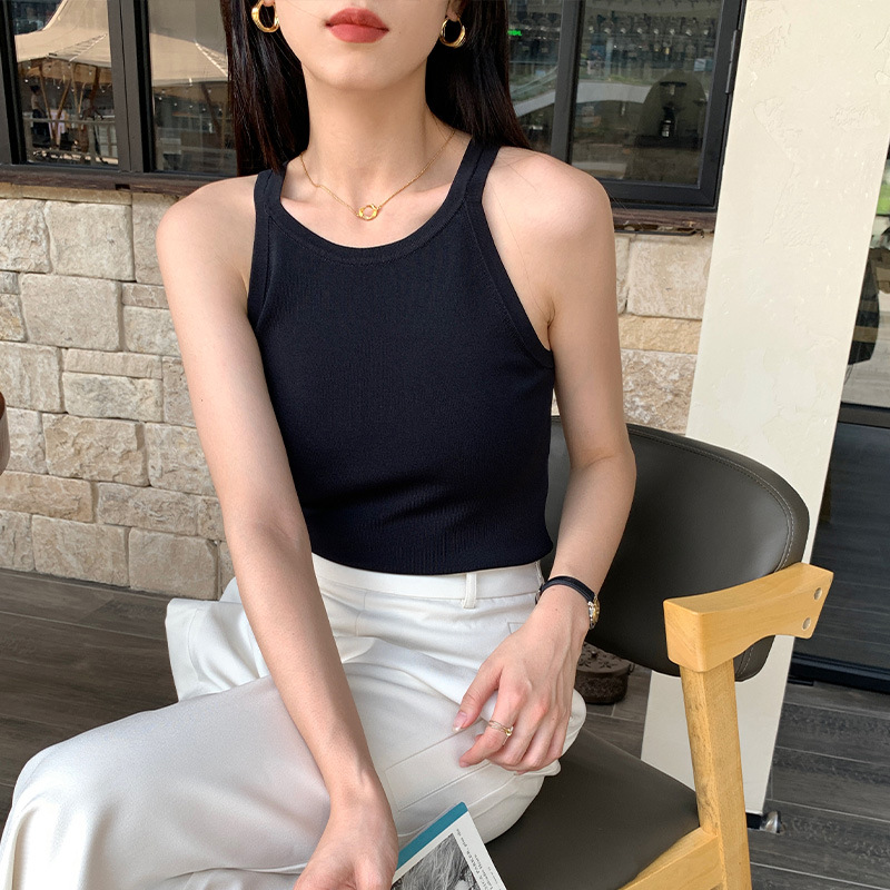 冰凉感高品质休闲挂脖无袖套头夏季新女装针织背心修身
