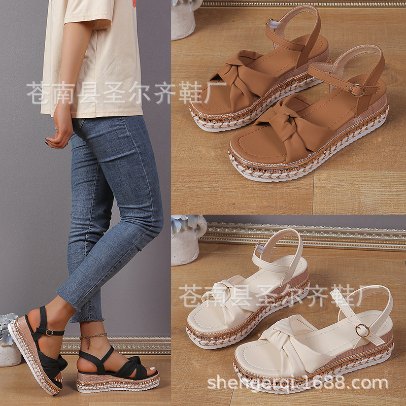 春夏季欧美新款大码鱼嘴搭扣坡跟凉鞋女时尚舒适厚底外贸女凉
