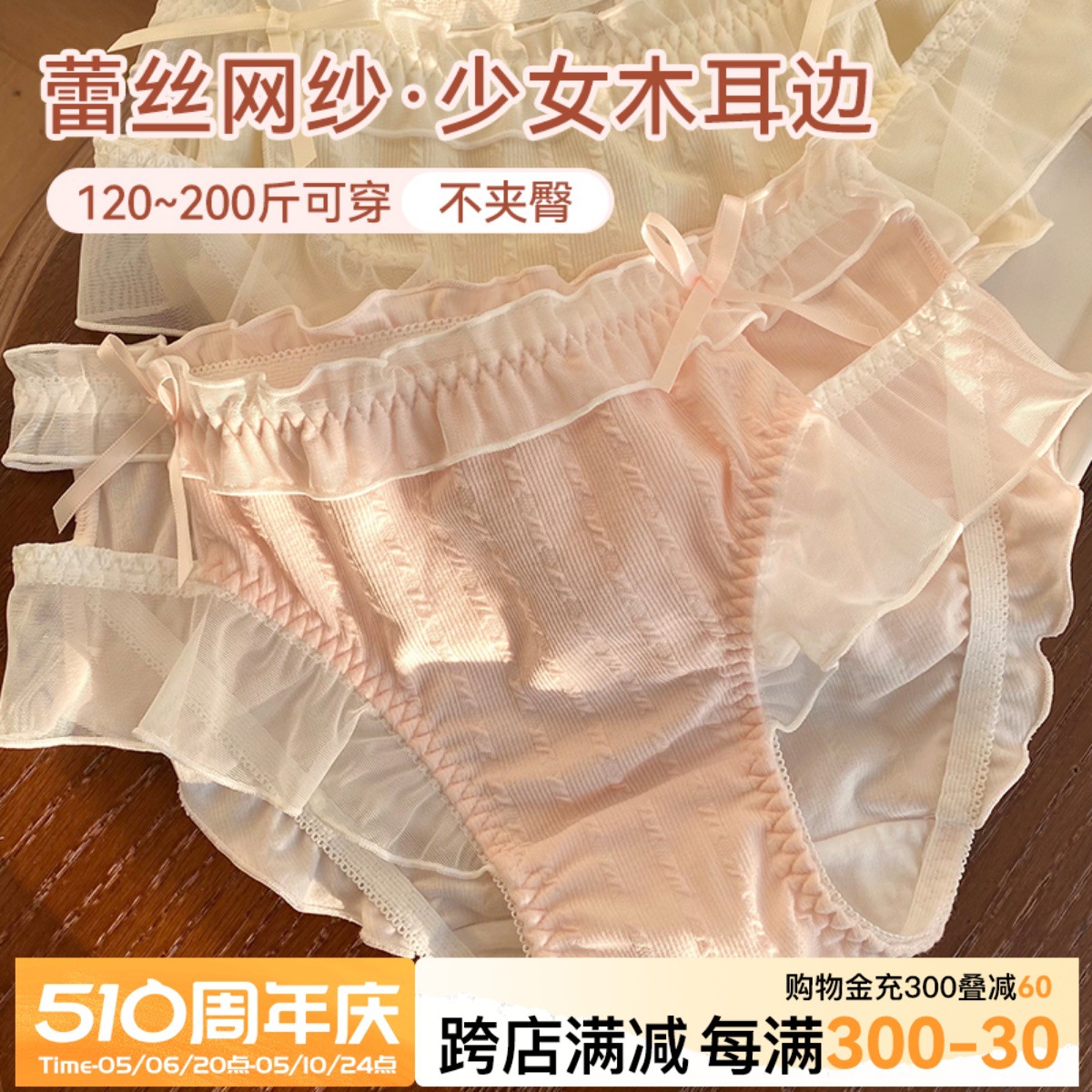 VV大码内裤女新款春夏季性感蕾丝网纱纯欲少女生包臀丁字短裤