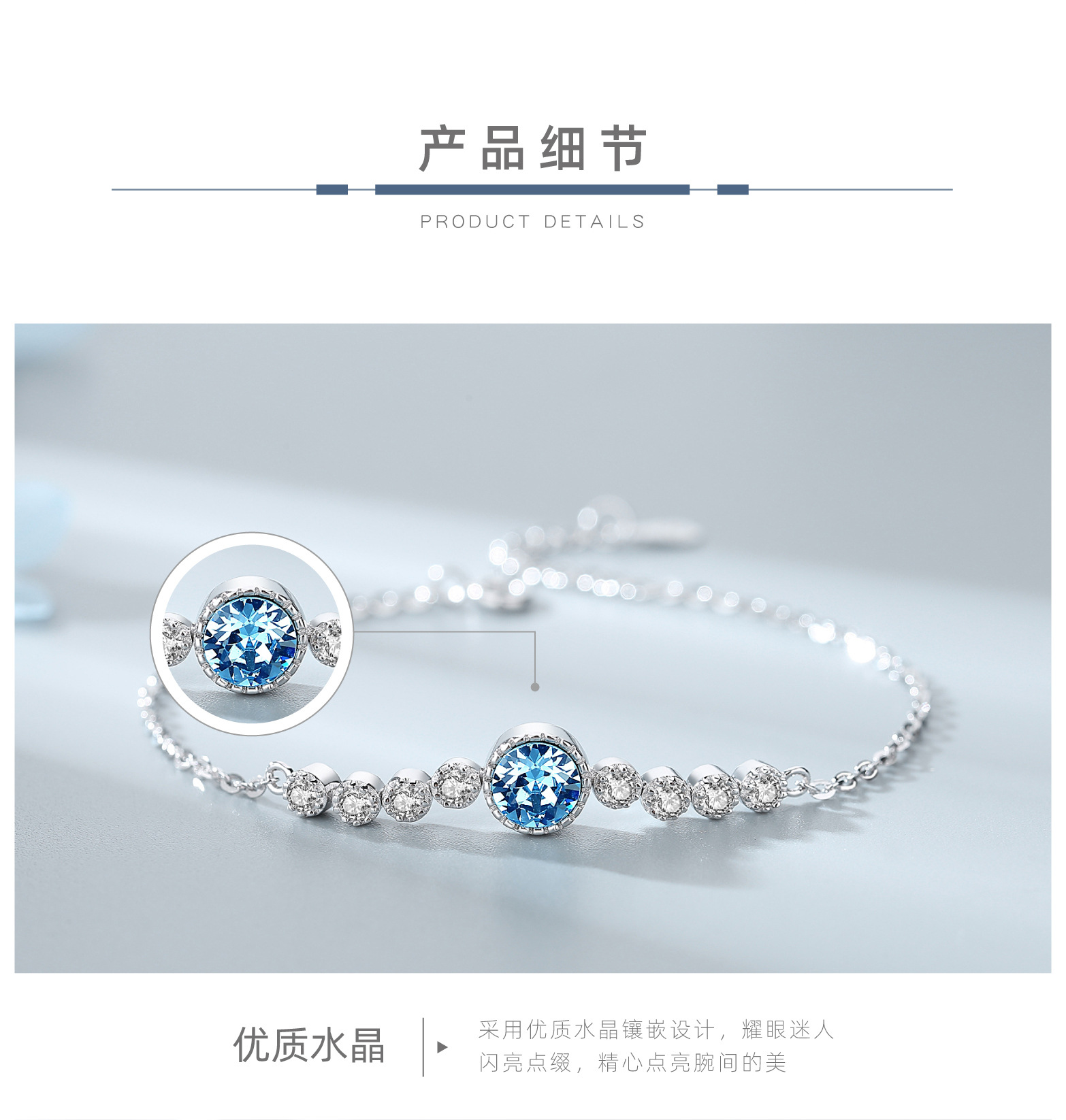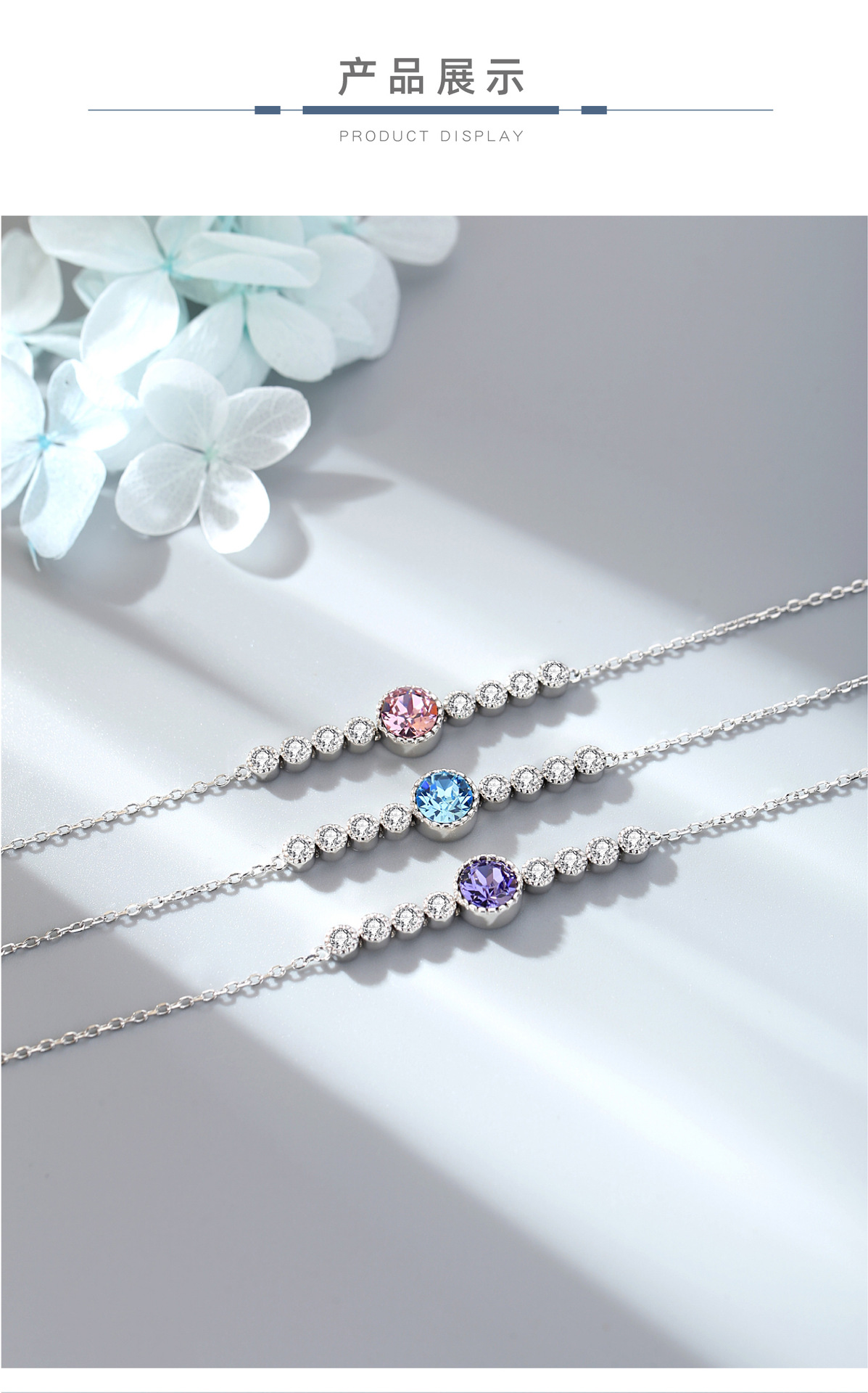 手链饰品女高级感水晶跨境热采亚马逊爆款小商品手串女士纯银手饰
