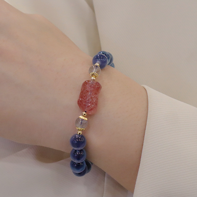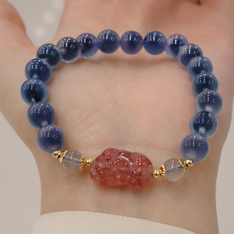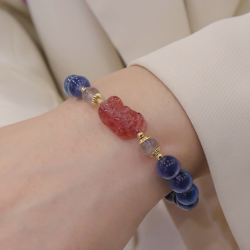 糖心玛瑙手链小众设计感高级感弹力手环草莓晶貔貅水晶手饰品