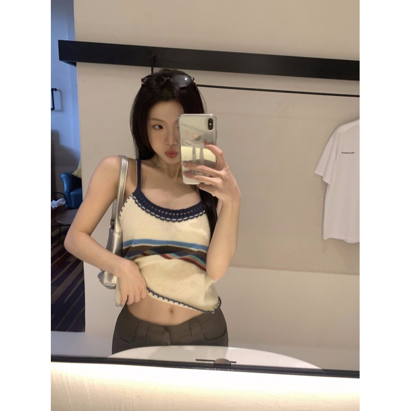春夏新款甜辣妹叠穿复古吊带甜美针织吊带背心女上衣