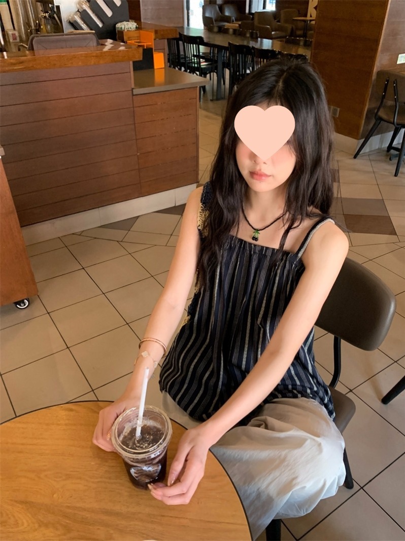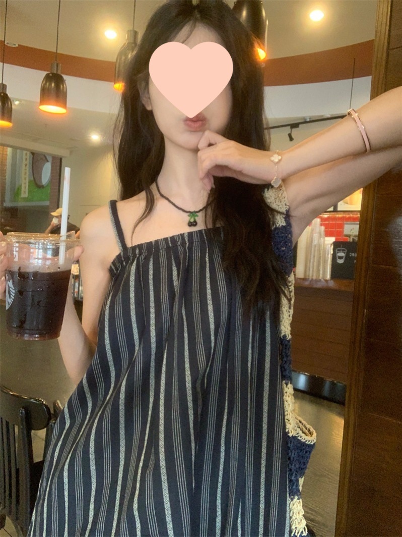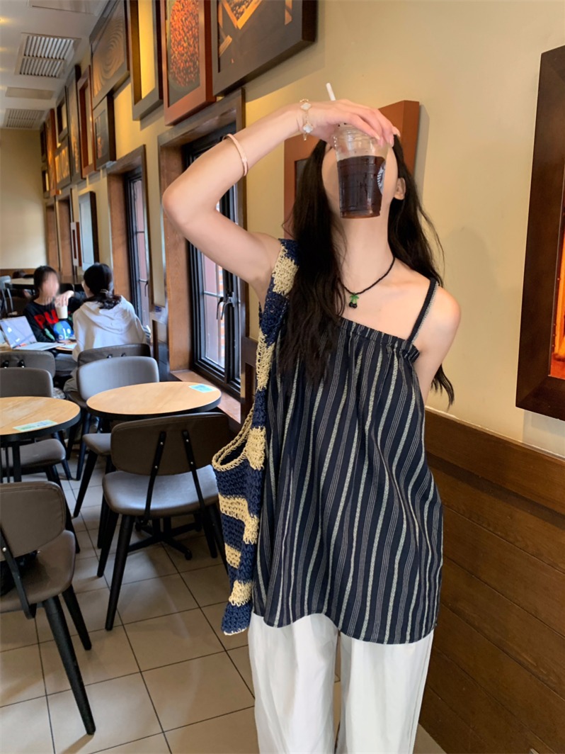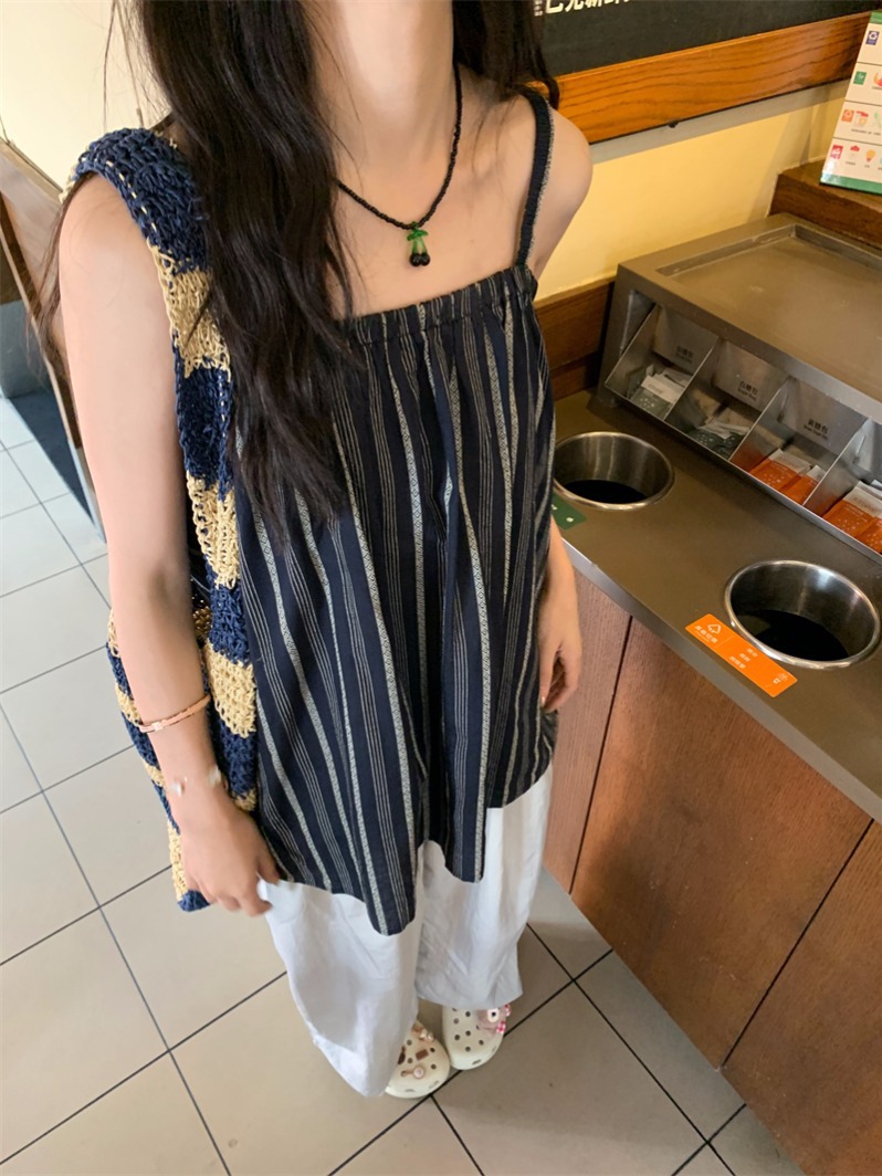 韩系甜心复古撞色条纹吊带背心女夏季韩系ins宽松外穿上衣
