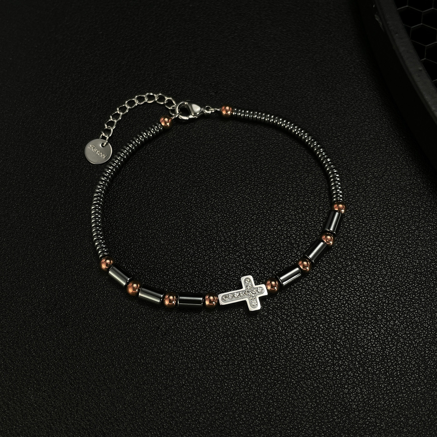 OPK饰品批发跨境新款复古黑胆石手饰欧美个性不锈钢十字架手链男