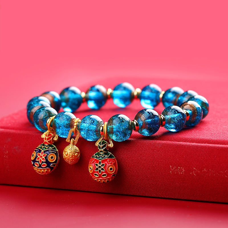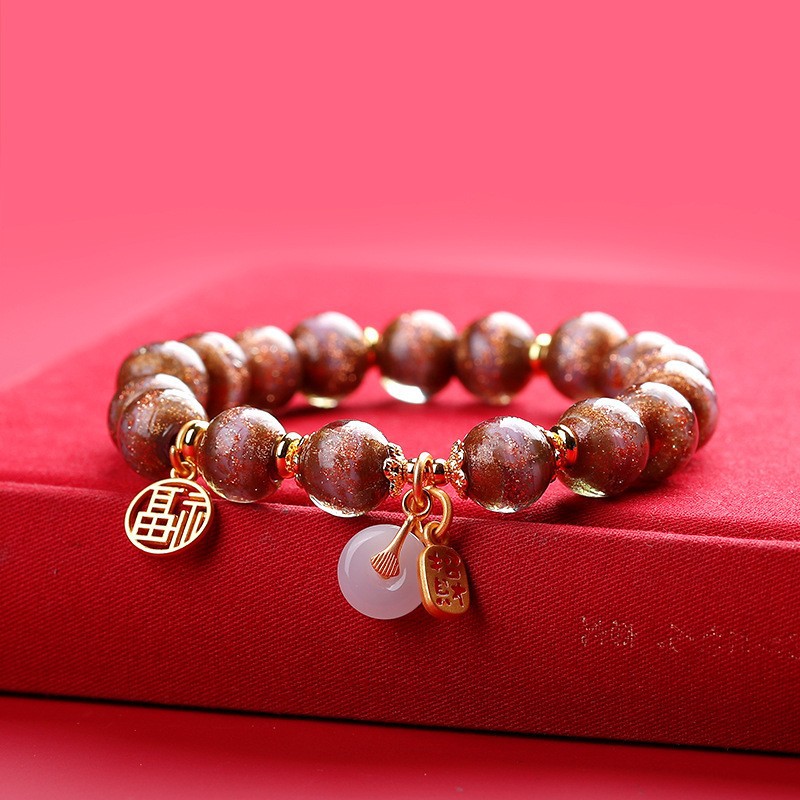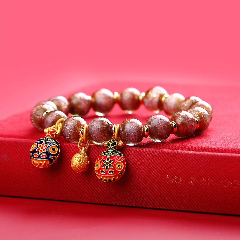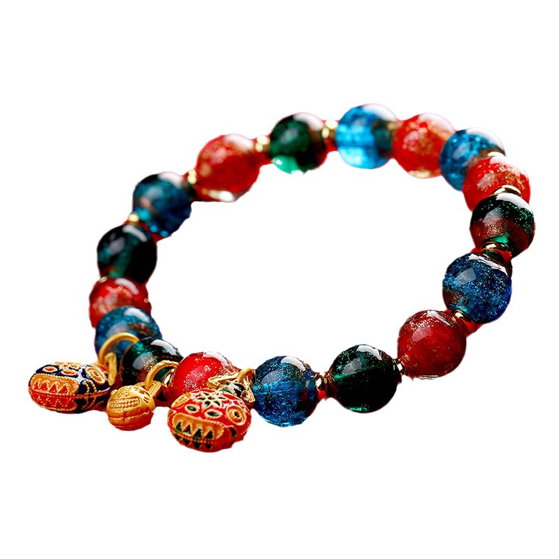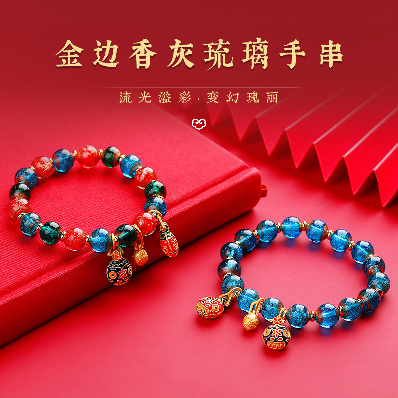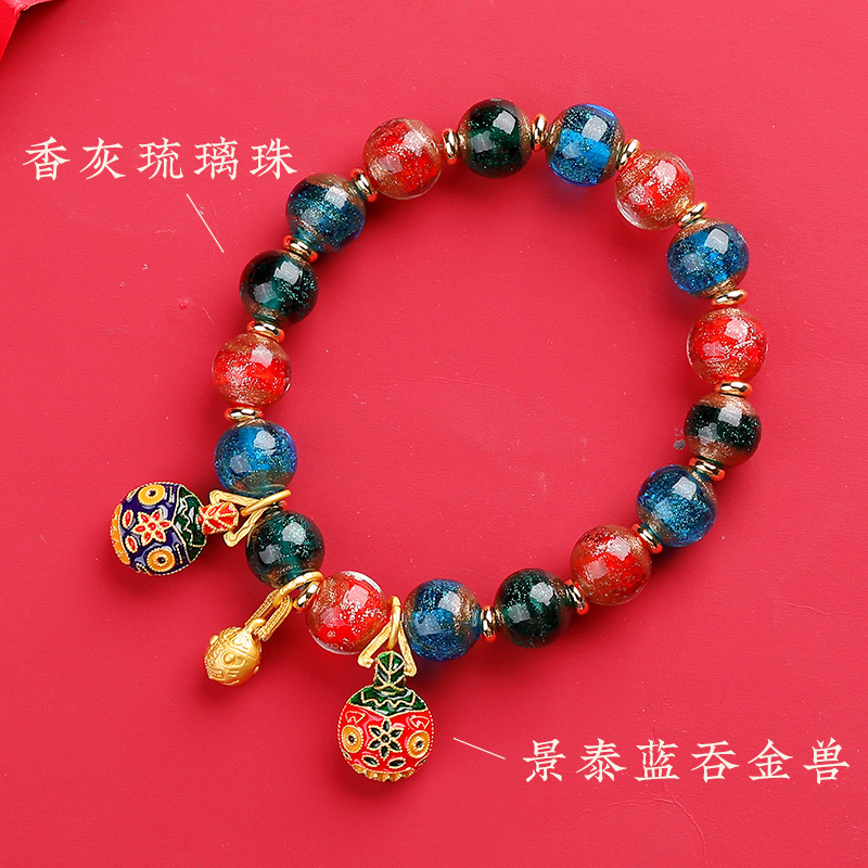 新香灰琉璃手串古法手链男女同款吞金兽五彩琉璃珠手链送礼手串