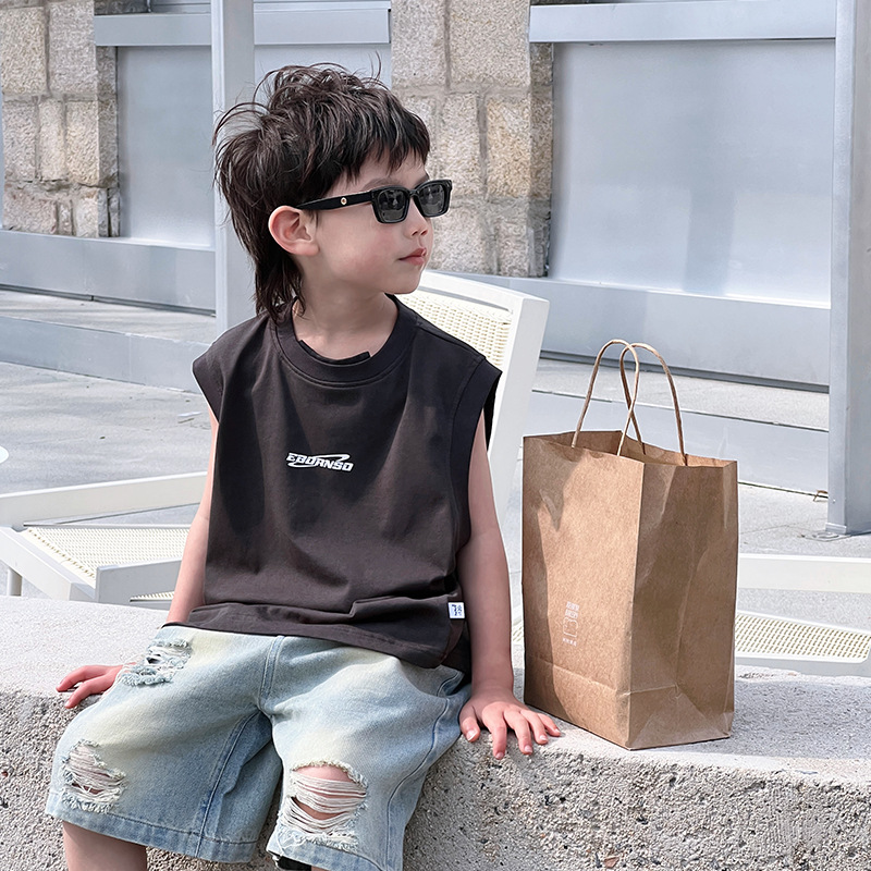 麦可希男童背心夏装韩版儿童纯棉宽松无袖T恤湖州织里童装