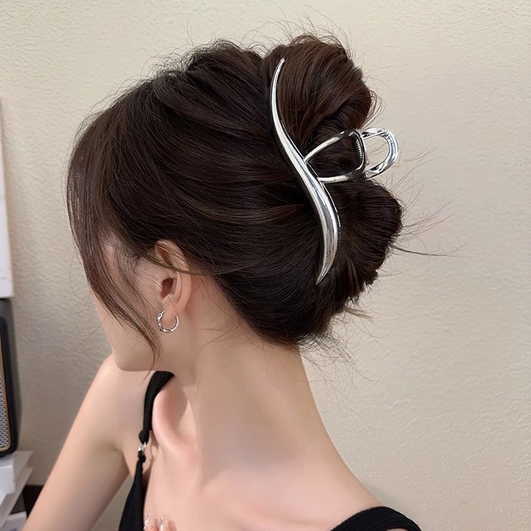 简约高级感大号金属发夹女ins风后脑勺盘发抓夹发量多鲨鱼夹头饰