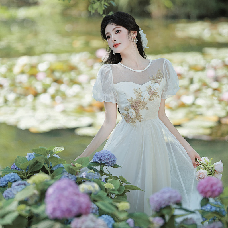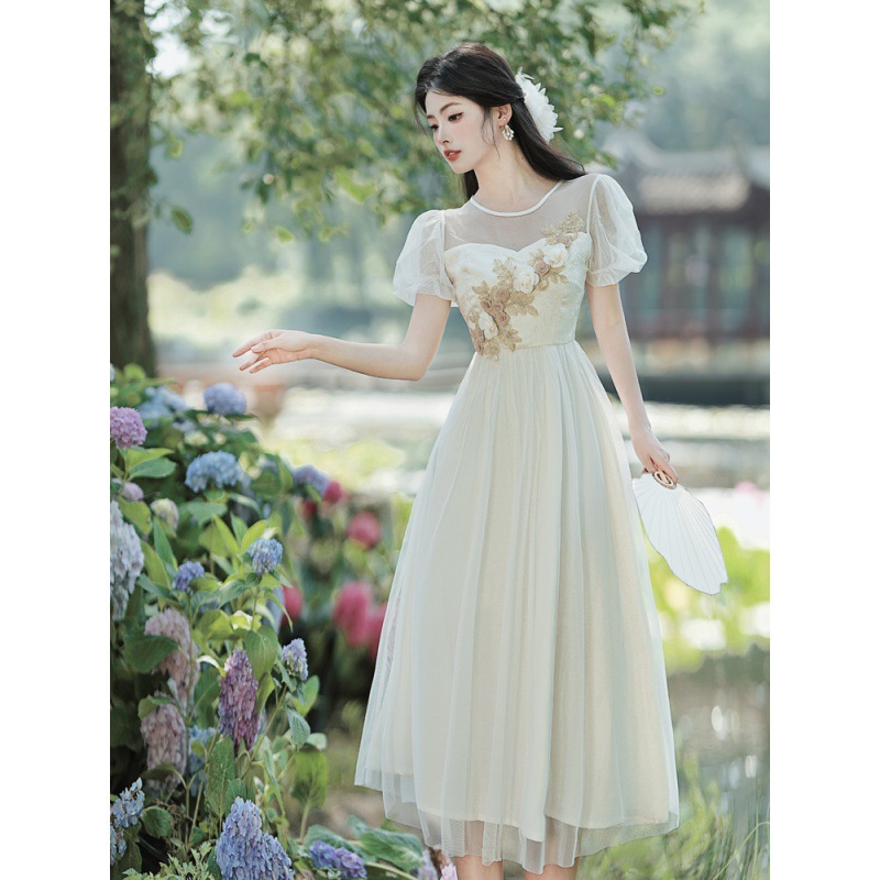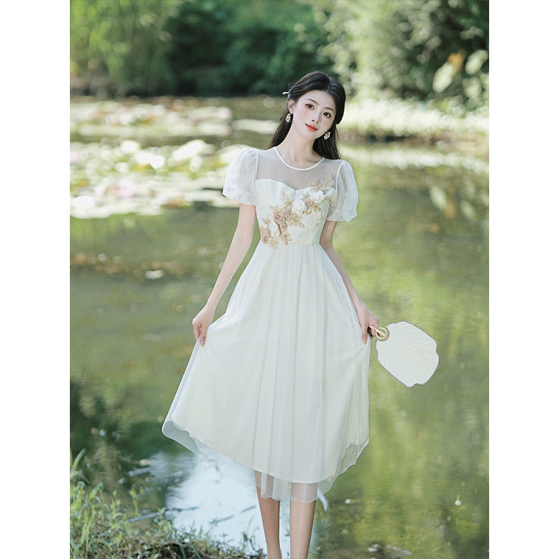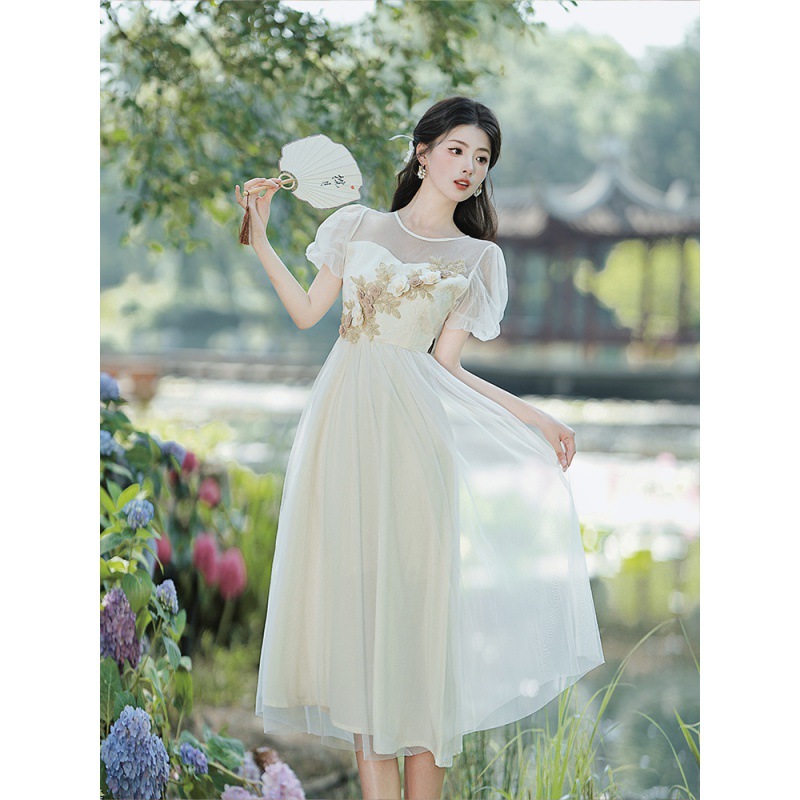 国风汉元素复古中式改良旗袍立体牡丹绣花连衣裙