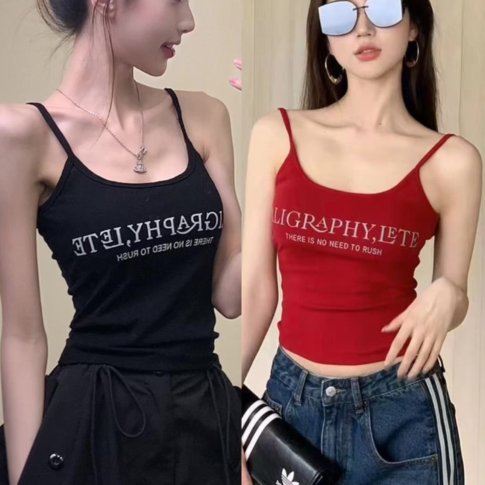新款英文字母印花吊带背心女带胸垫辣妹修身内搭可外穿美背上衣女