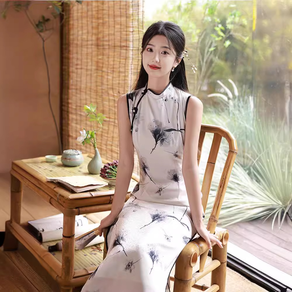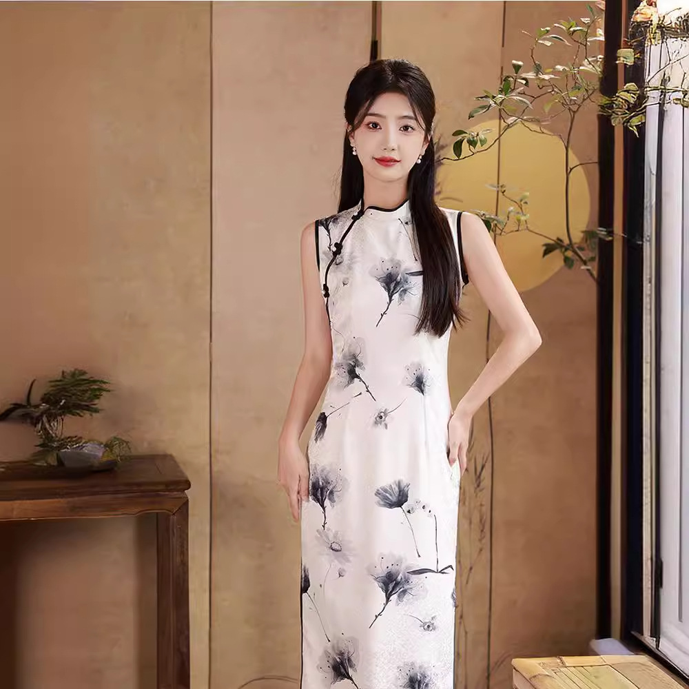 年新款复古国潮印花改良旗袍新中式日常收腰中长款连衣裙