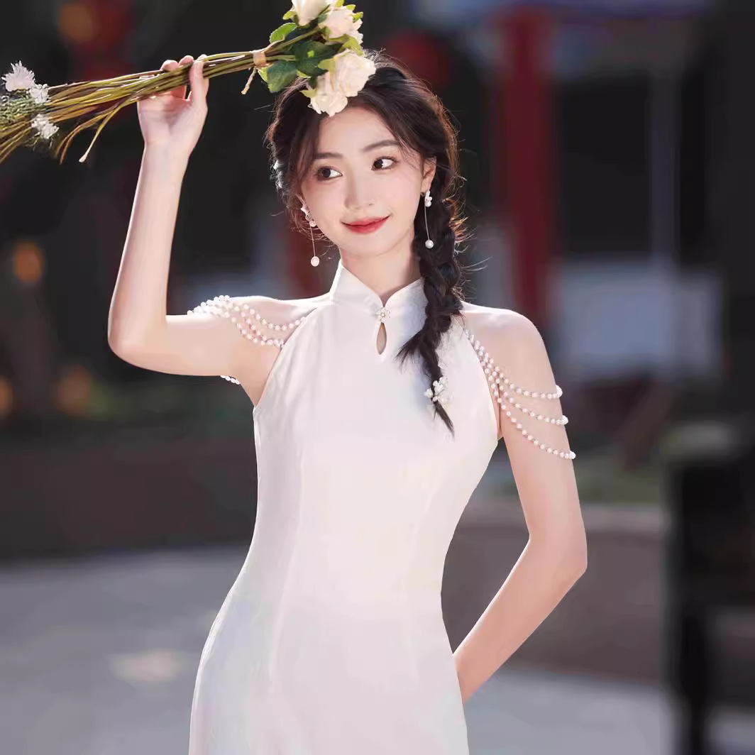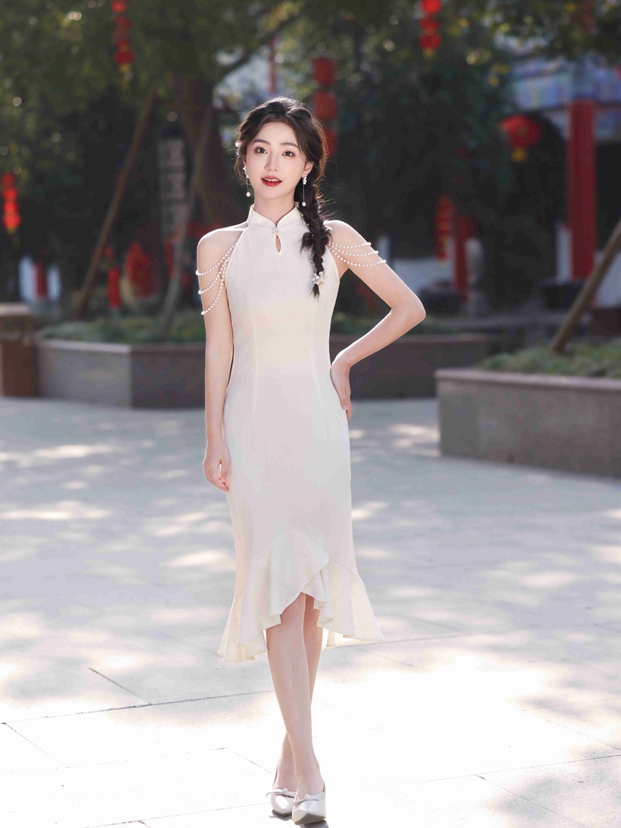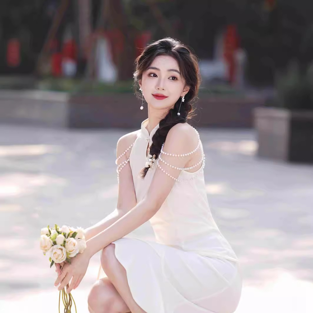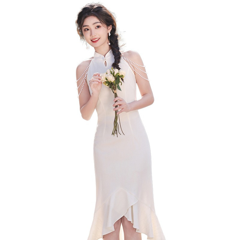 蕾丝旗袍年新款年轻款白色新娘领证登记订婚鱼尾礼服裙小个子