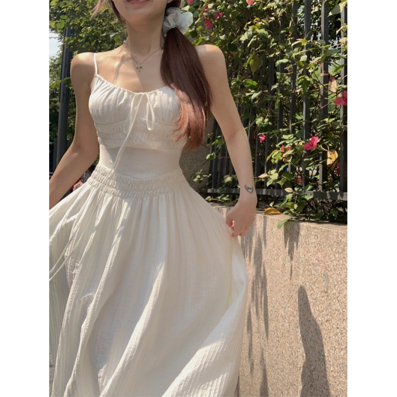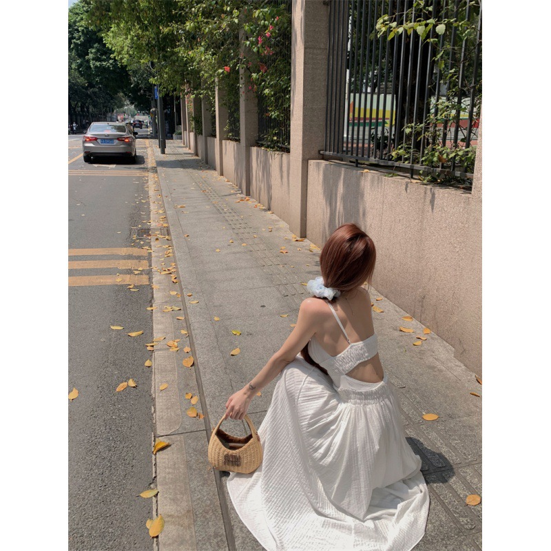 Sexy halter dress Female summer French vacation A-line skirt white skinny skirt