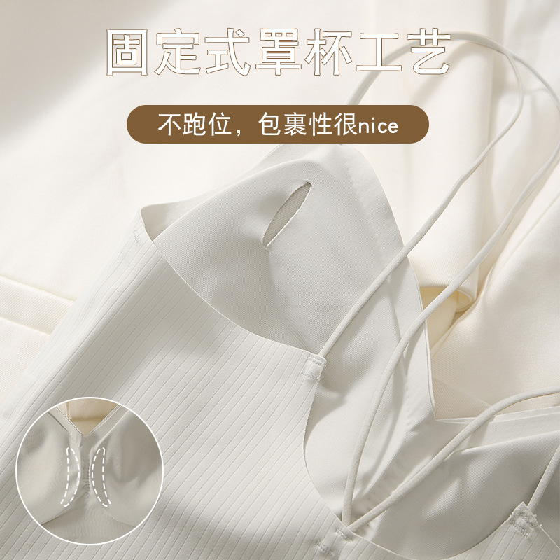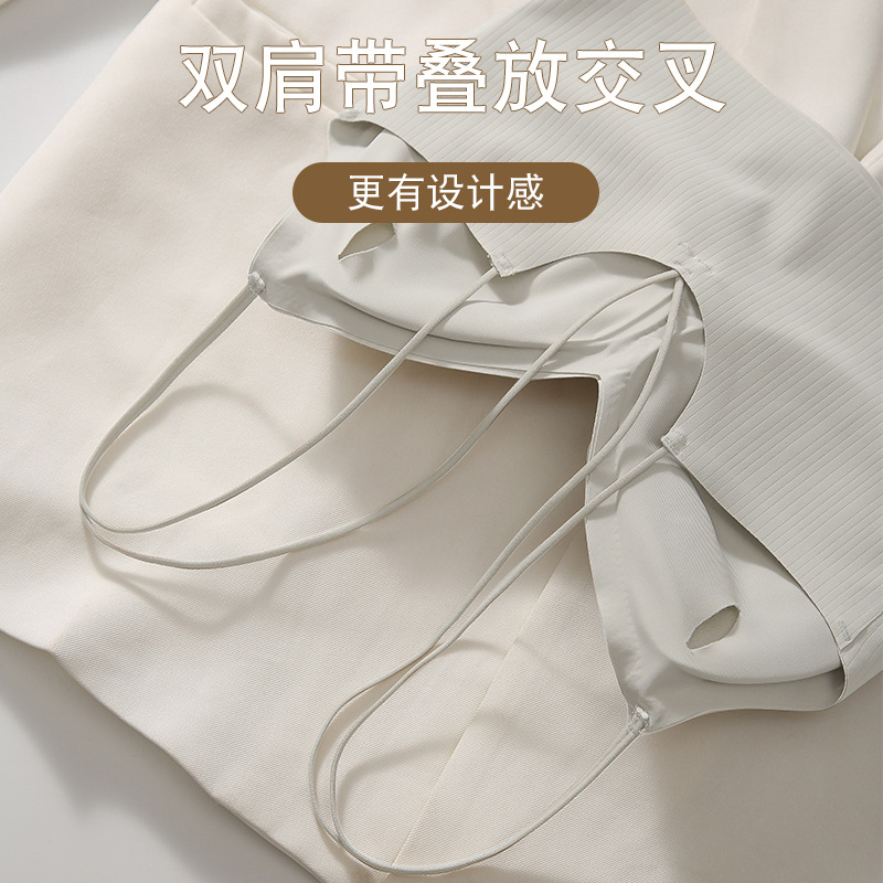 博主同款小众设计感修身遮副乳针织吊带斜肩白背心女