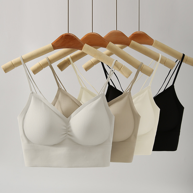 夏季薄款无痕美背吊带内衣女一体背心小胸聚拢无钢圈运动文胸胸罩
