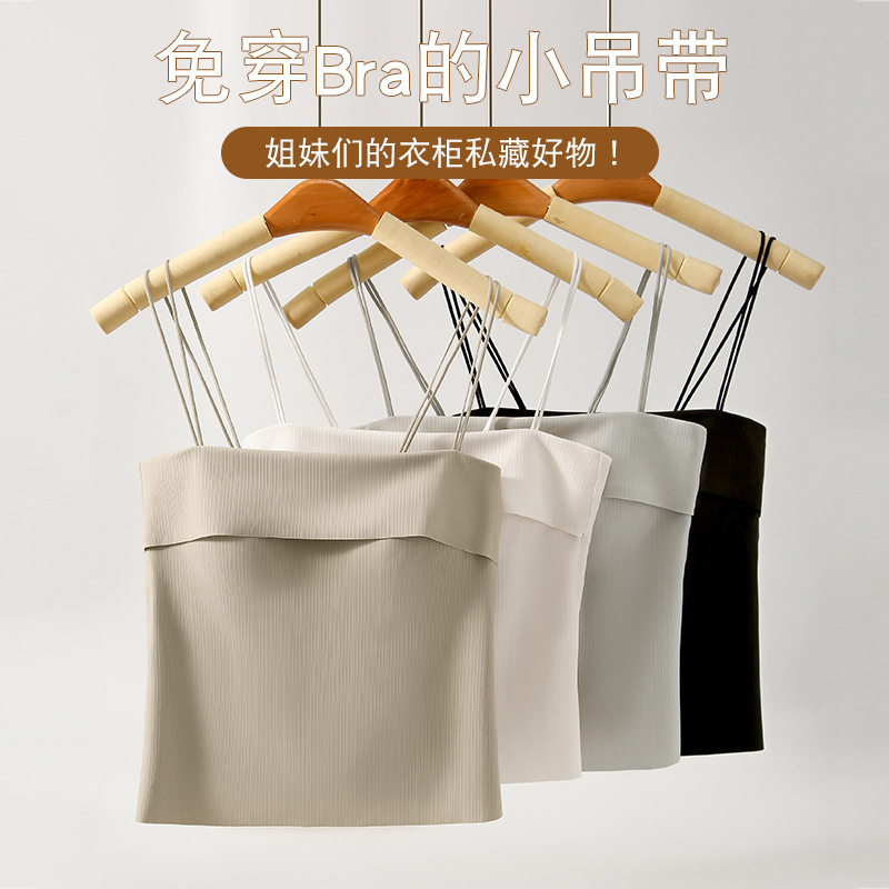 春夏款罩杯一体式吊带背心女带胸垫内搭外穿无痕吊带内衣透气文胸