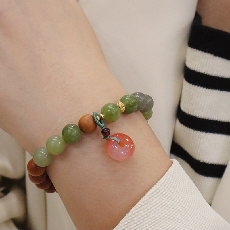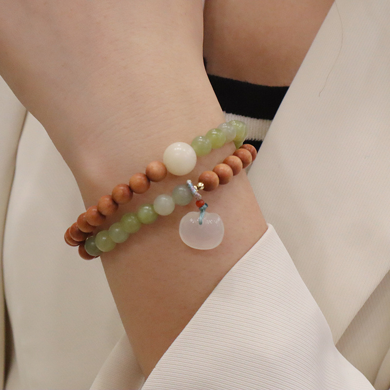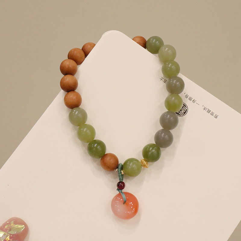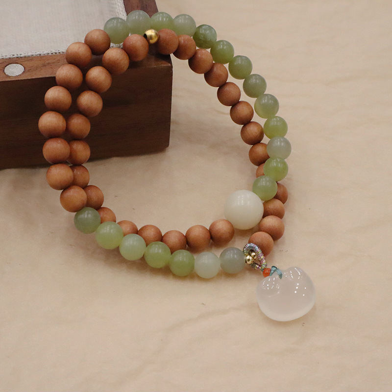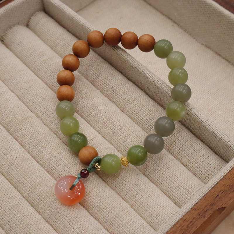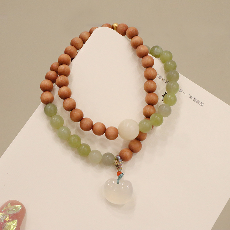 青山黛灵隐新中式天然青玉圆珠檀木手串女气质小众手链复古手串