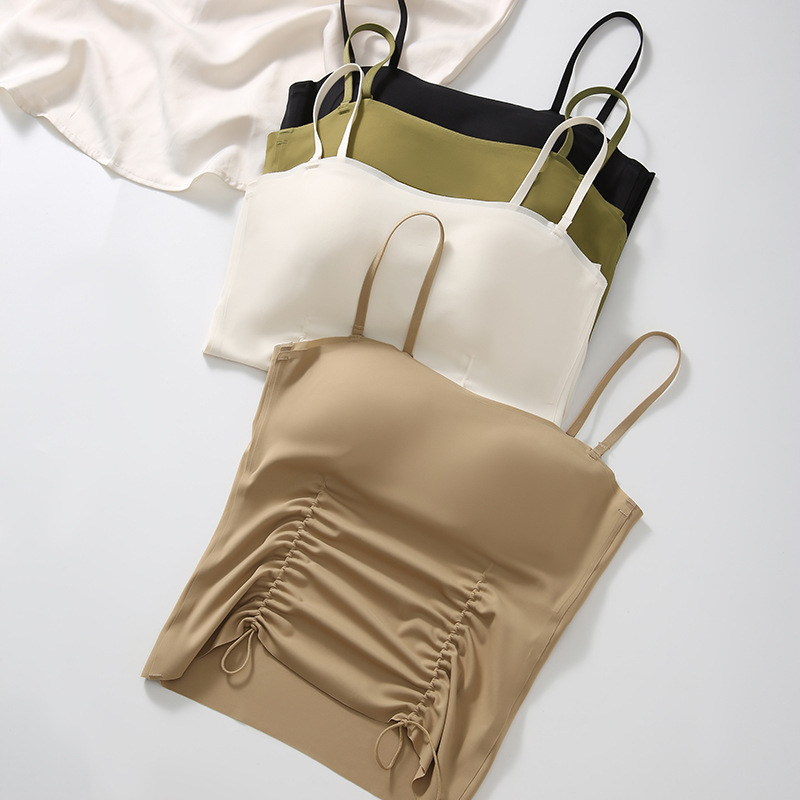 春夏新款罩杯一体式吊带背心女带胸垫内搭外穿打底吊带内衣女文胸