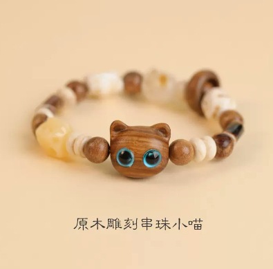 原木雕刻串珠小喵