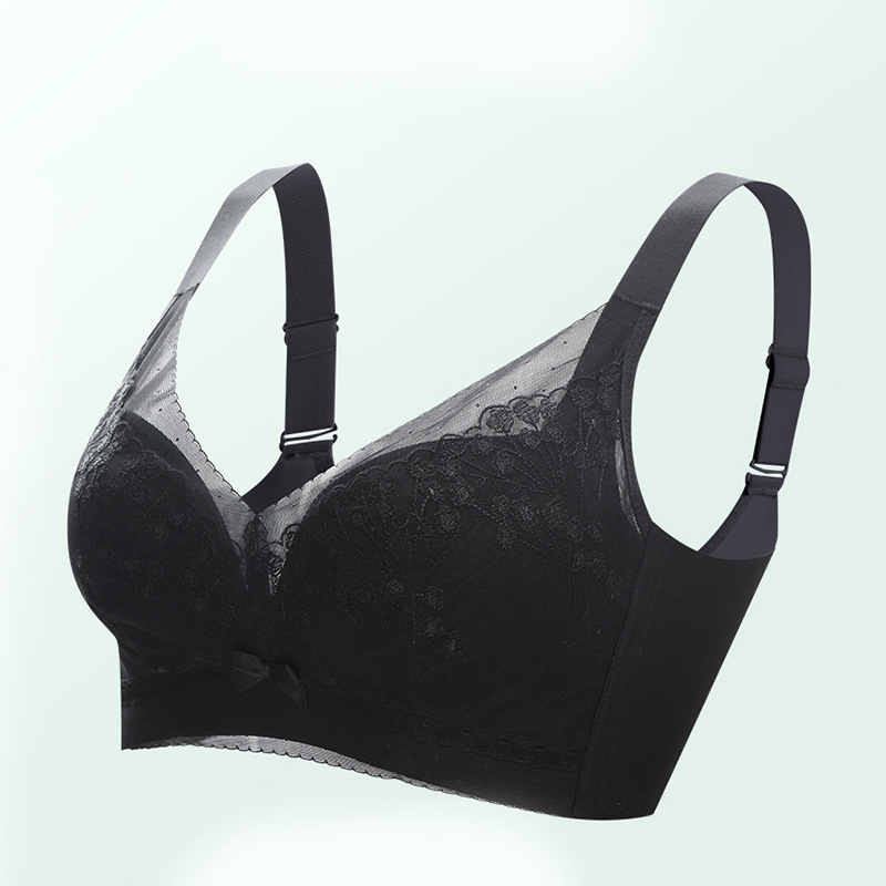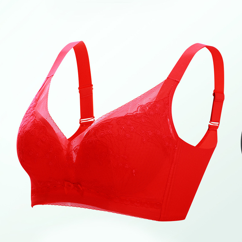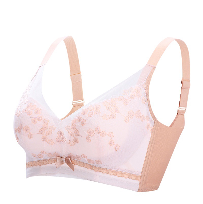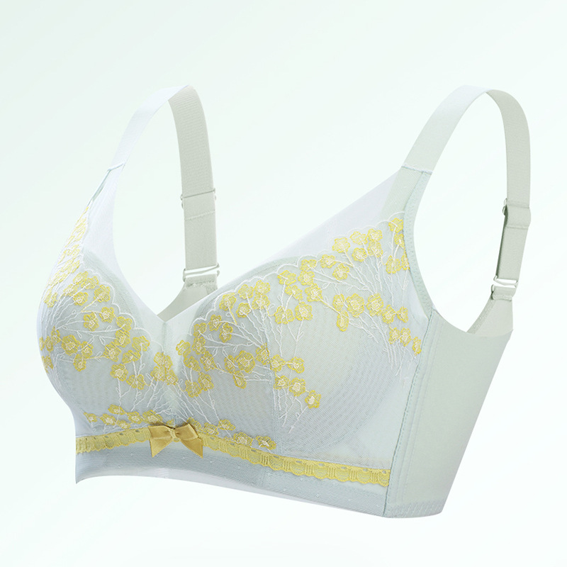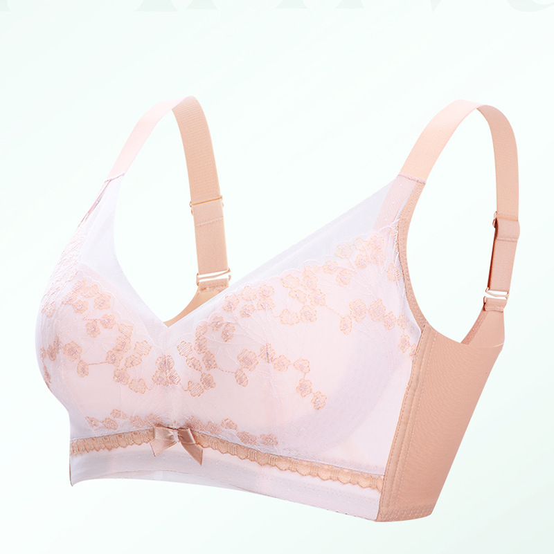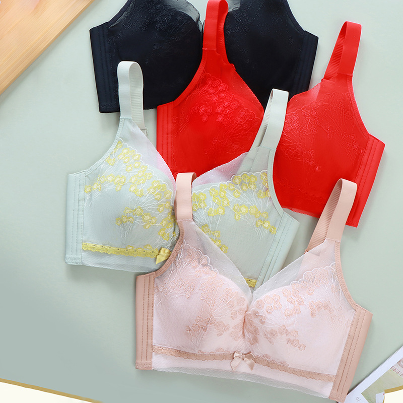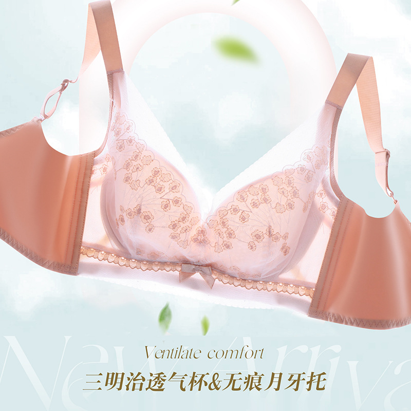 国风刺绣超薄蕾丝内衣女无钢圈收副乳大胸显小纸片杯性感聚拢文胸