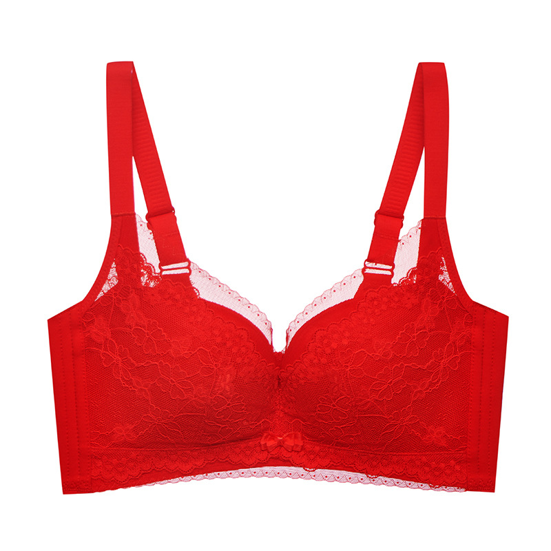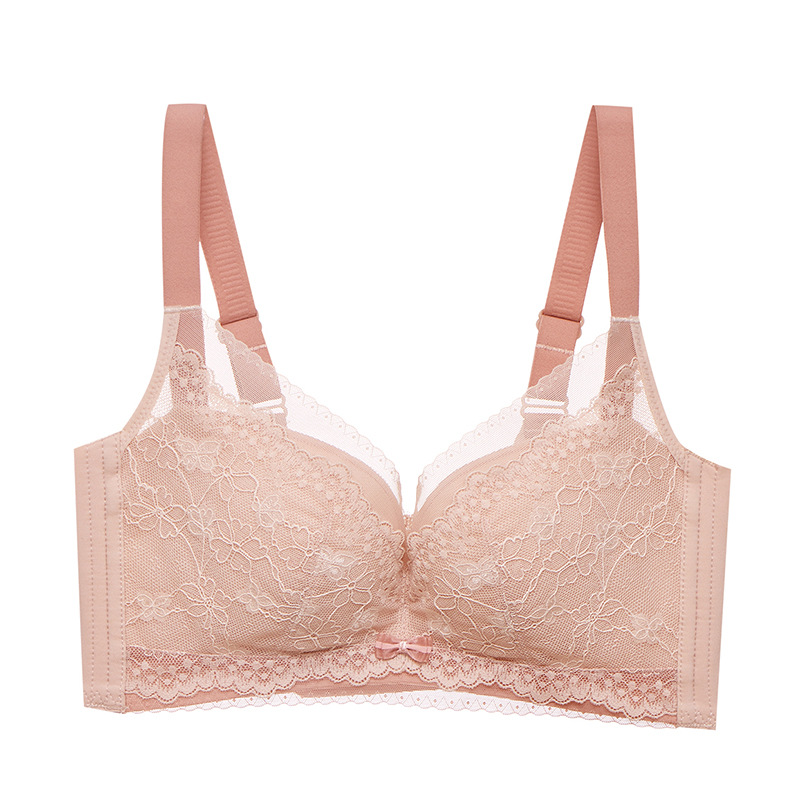 新款时尚内衣女中薄杯无钢圈小胸聚拢调整型收副乳性感蕾丝文胸罩