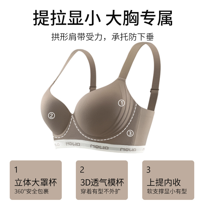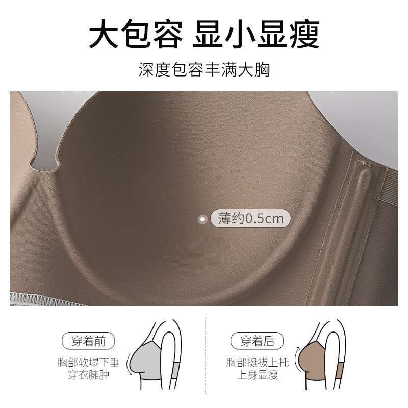 大胸显小内衣女夏季薄款聚拢收副乳防下垂上托调整型无痕大码文胸