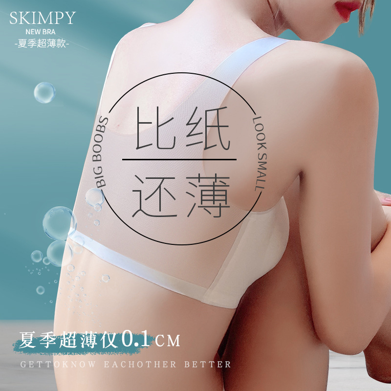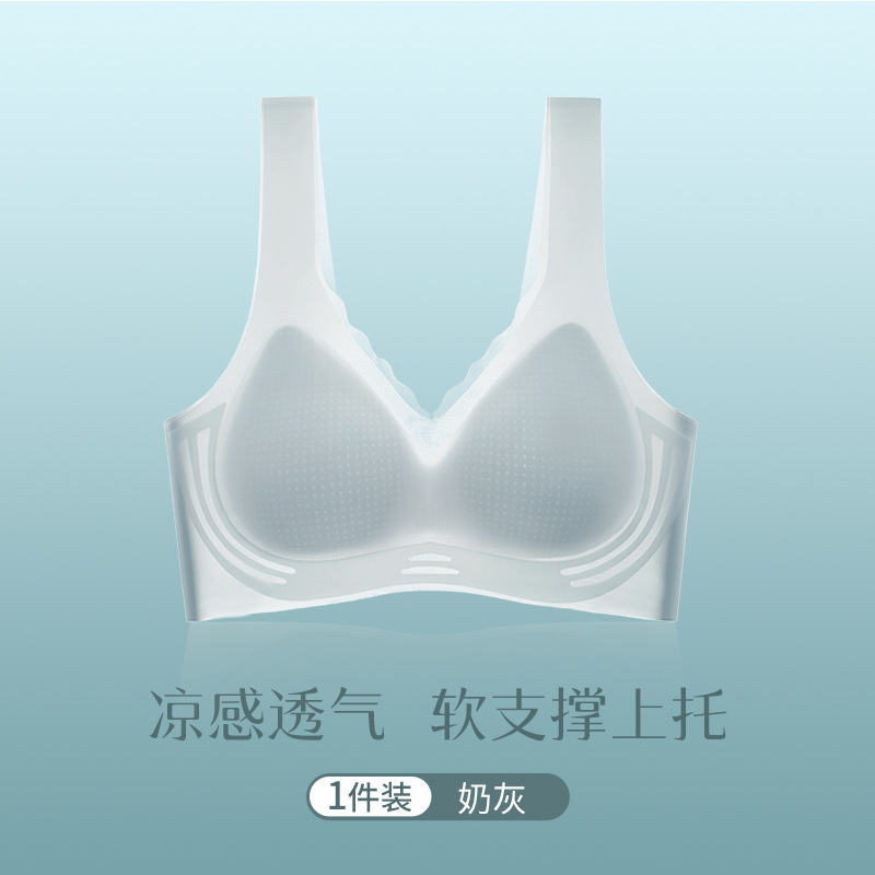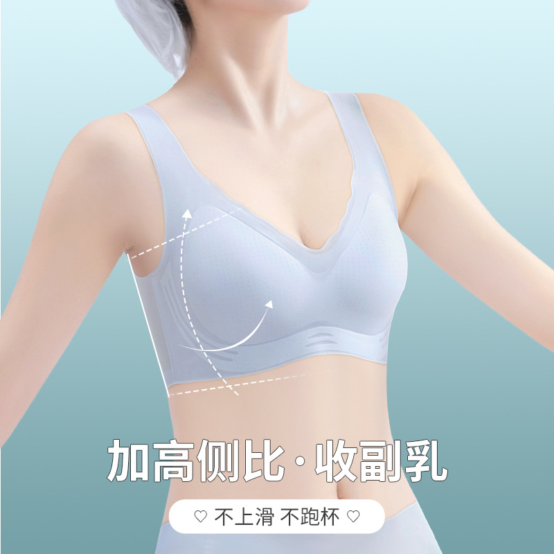 夏季超薄无痕内衣女大胸显小收副乳防下垂美背心式冰丝凉感文胸罩