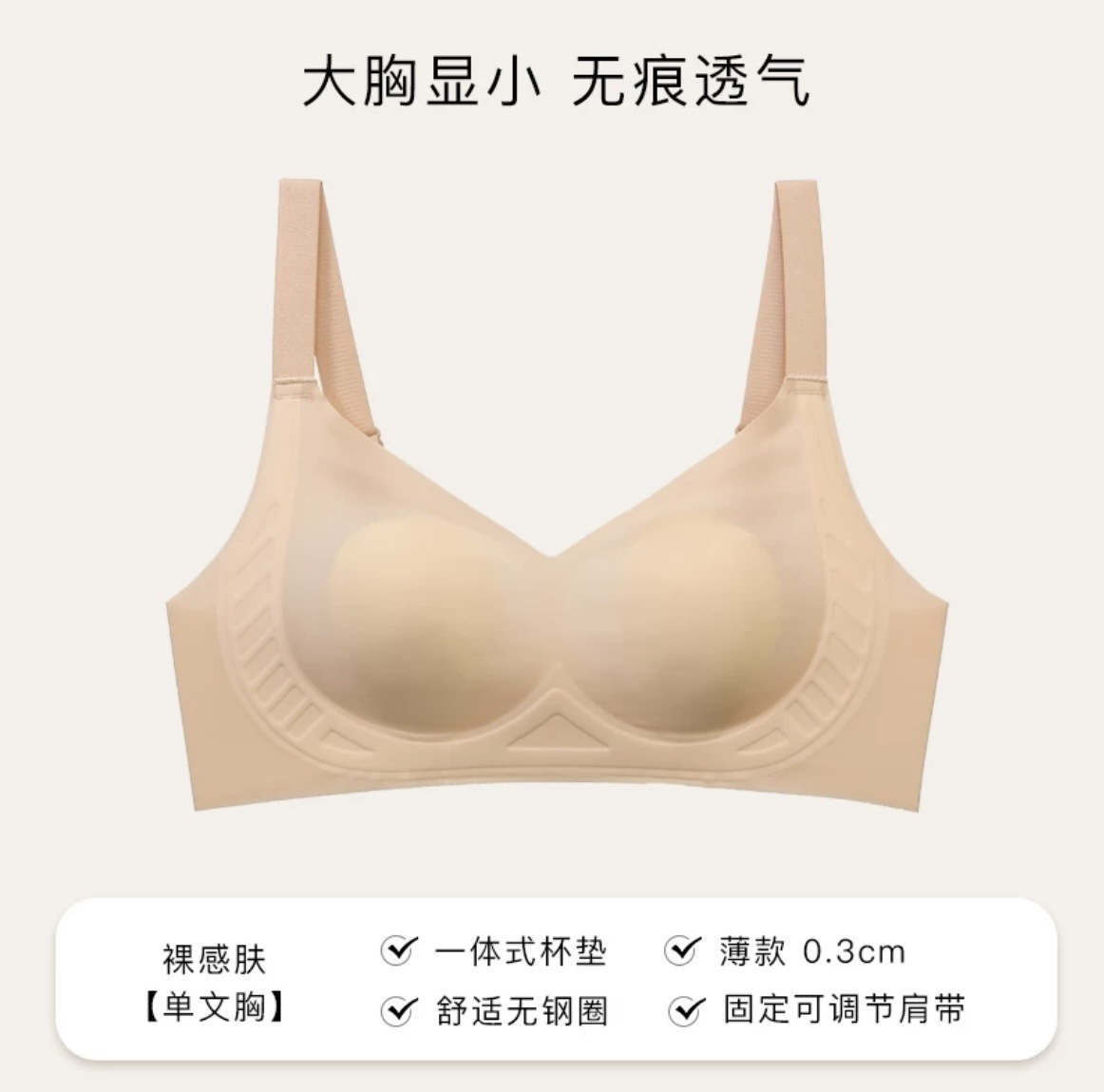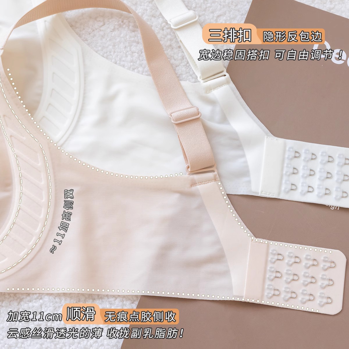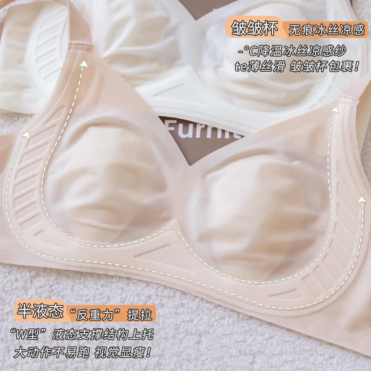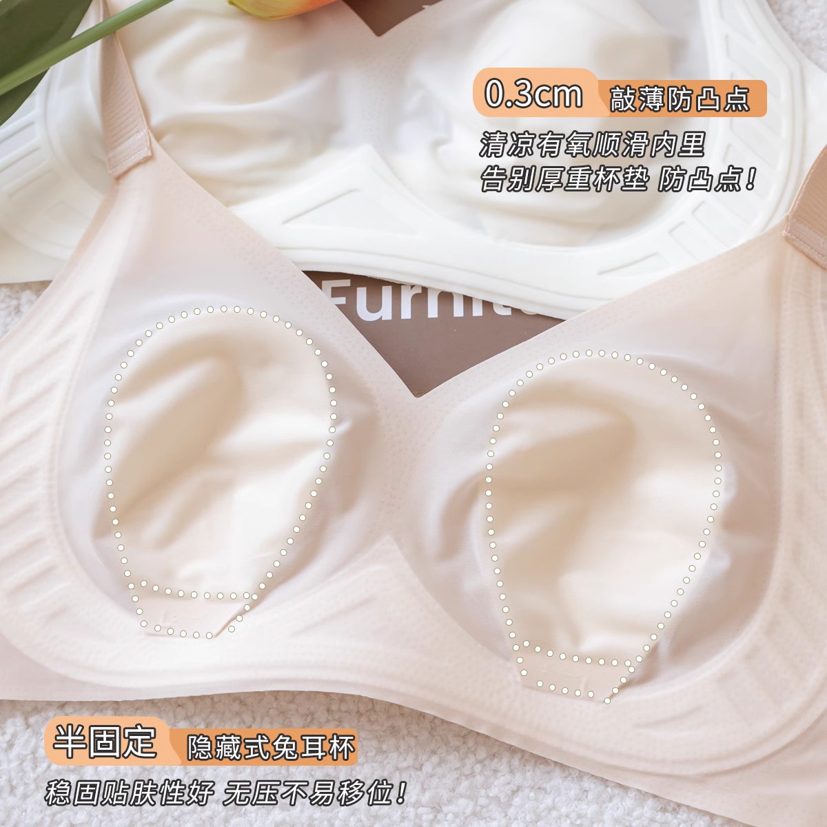 无痕凉感冰丝内衣女大胸显小裸感透气薄款收副乳防下垂兔耳朵文胸