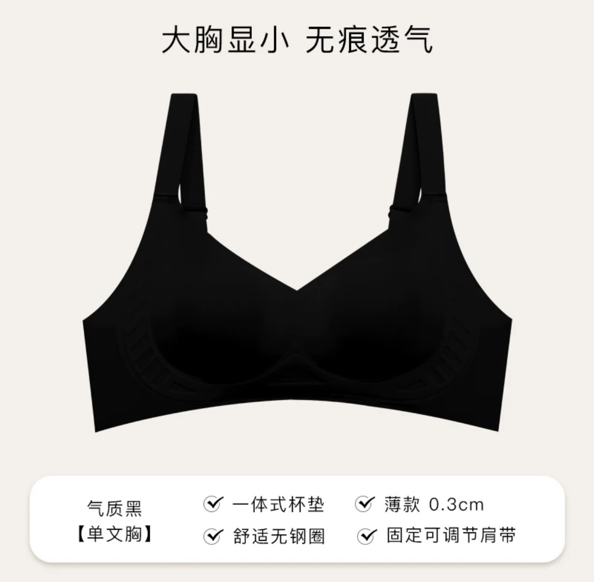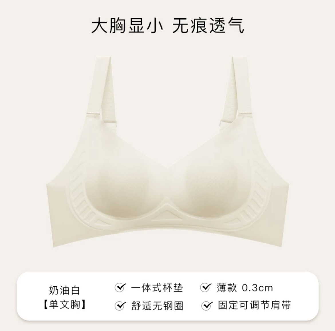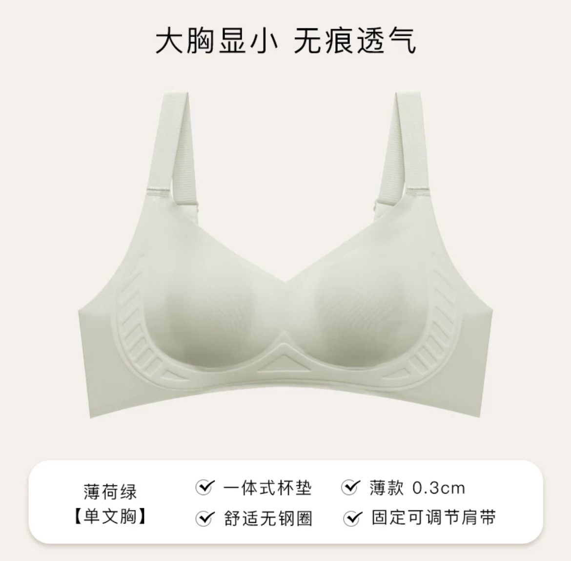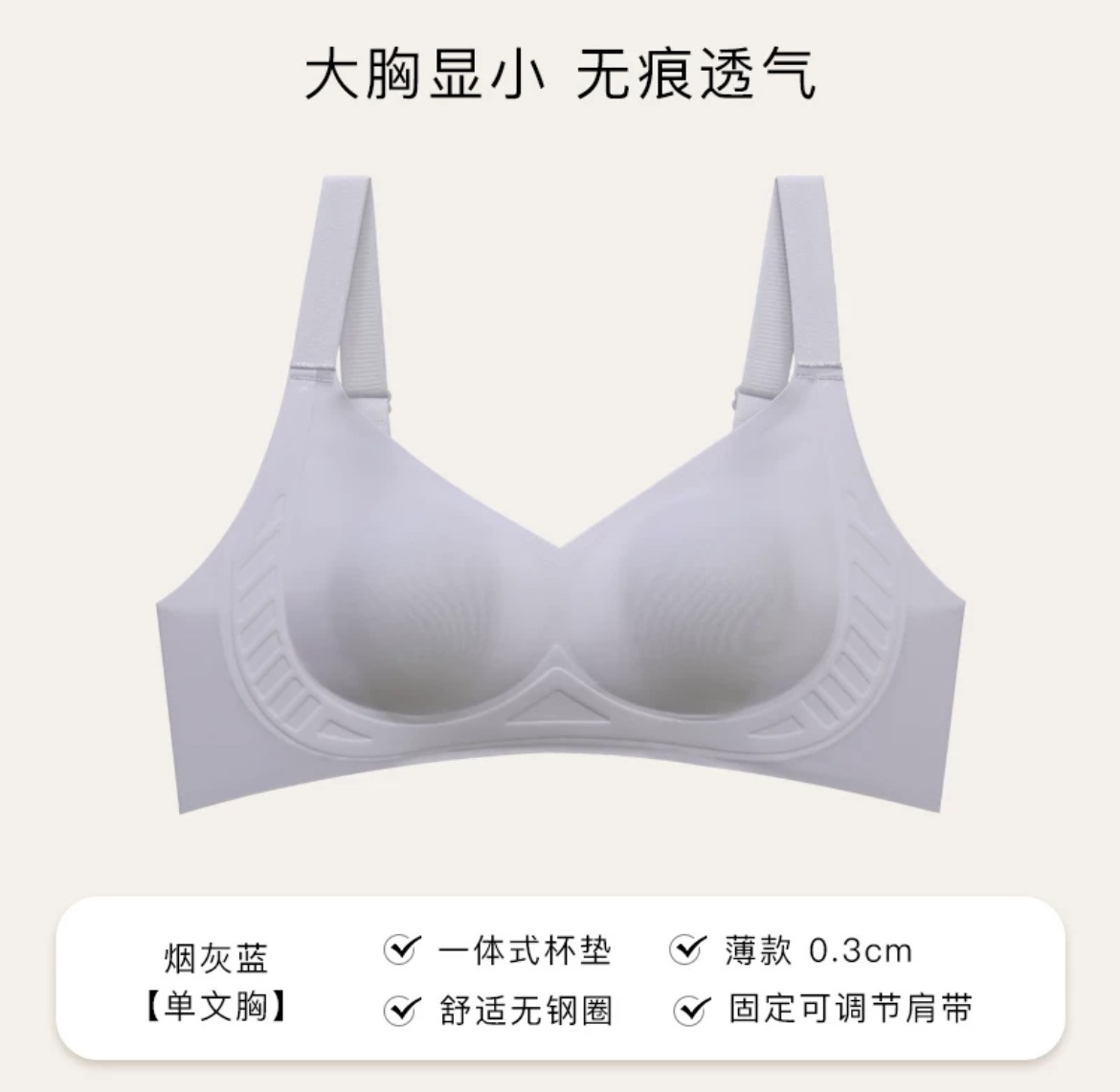 无痕凉感冰丝内衣女大胸显小裸感透气薄款收副乳防下垂兔耳朵文胸