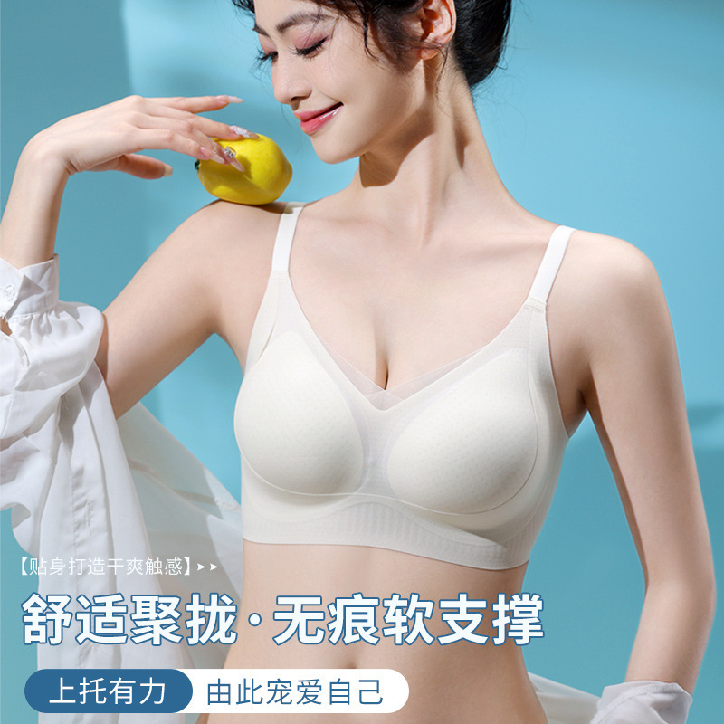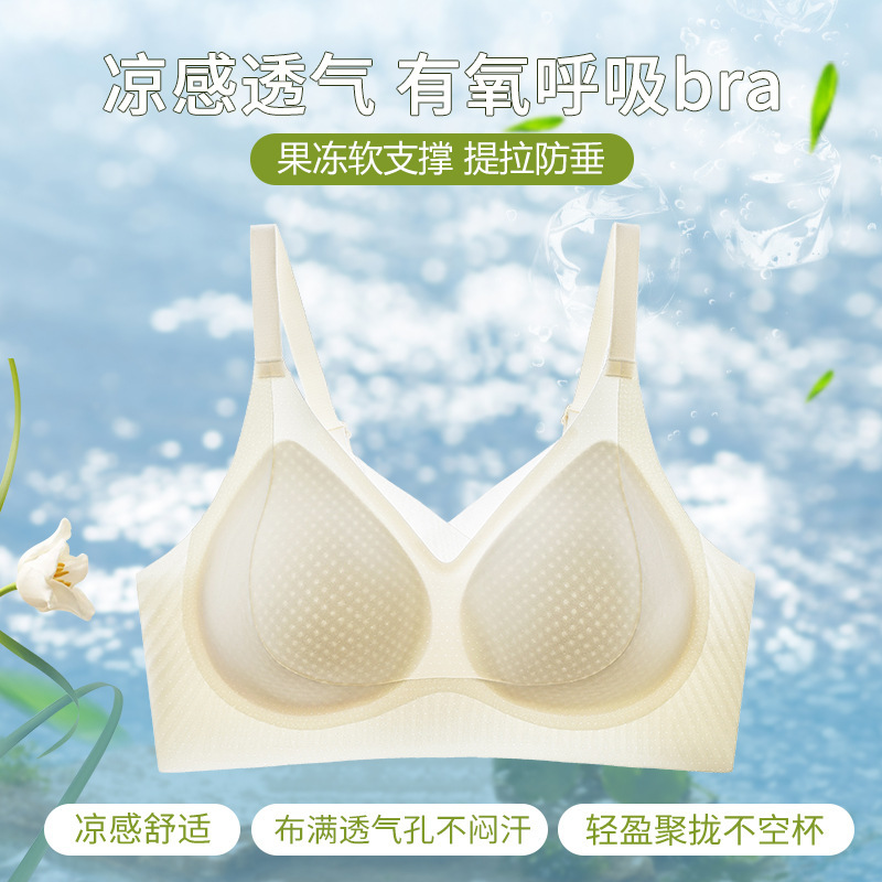 夏季超薄款冰丝无痕内衣女聚拢收副乳提拉防下垂7A抗菌透气文胸罩