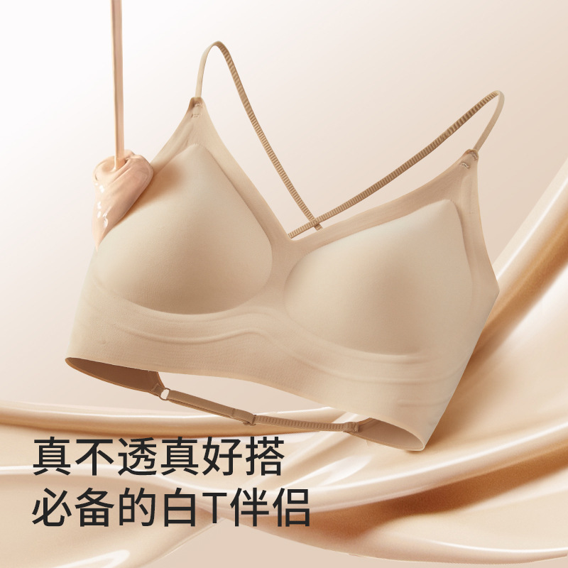 白T不透深肤色无痕隐形内衣女薄款小胸聚拢细肩带美背大露背文胸