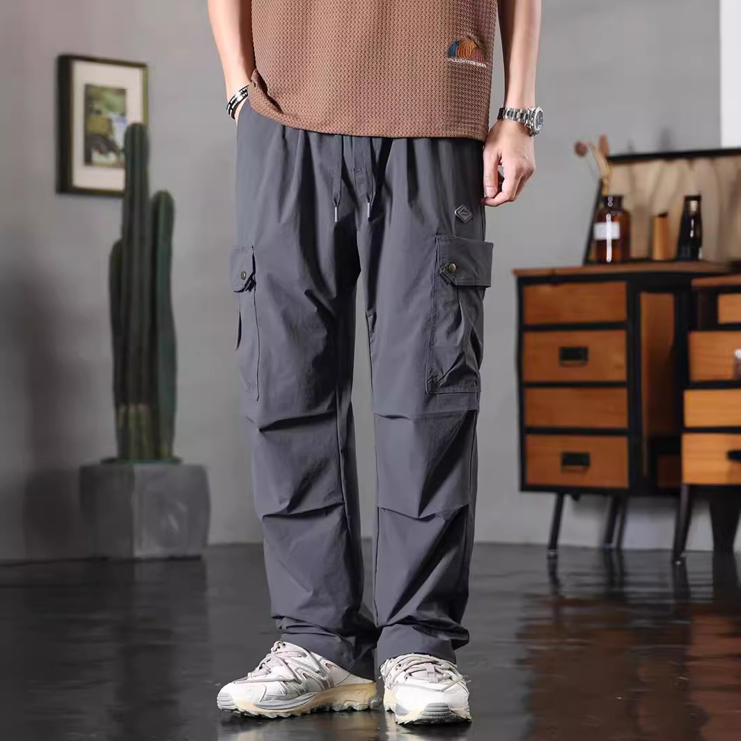美式大口袋复古工装速干休闲裤男士夏季新款宽松潮牌弹力直筒长裤