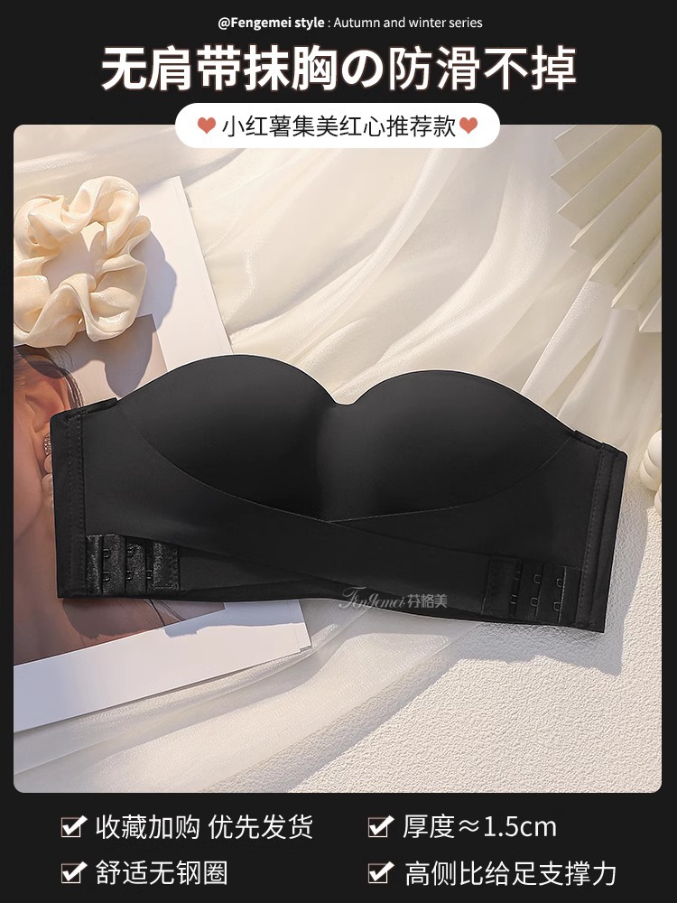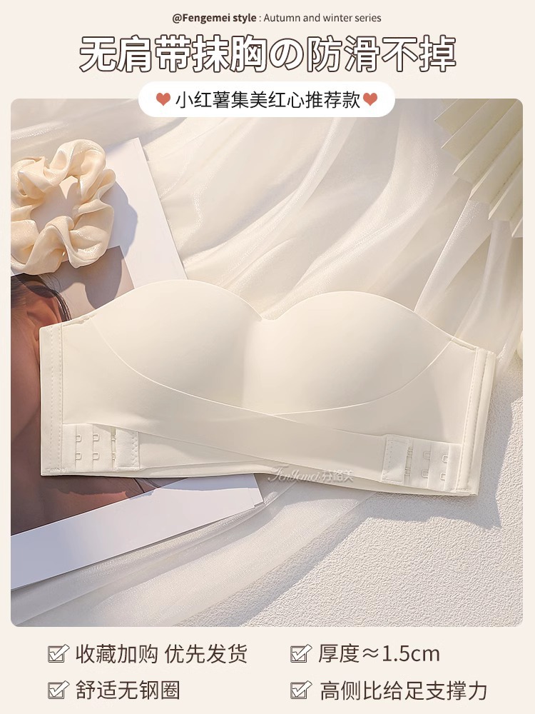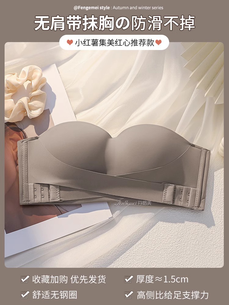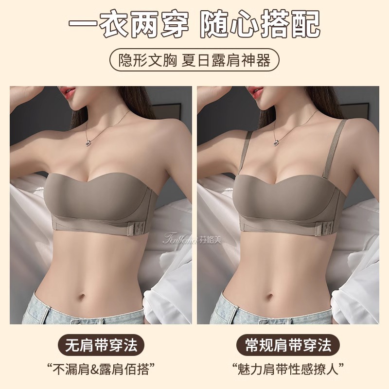 前扣无肩带内衣女防滑聚拢小胸显大隐形裹胸防走光抹胸无痕文胸罩