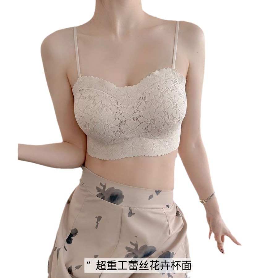 蕾丝抹胸吊带背心女士夏季薄款自带胸垫聚拢内搭外穿无痕美背内衣