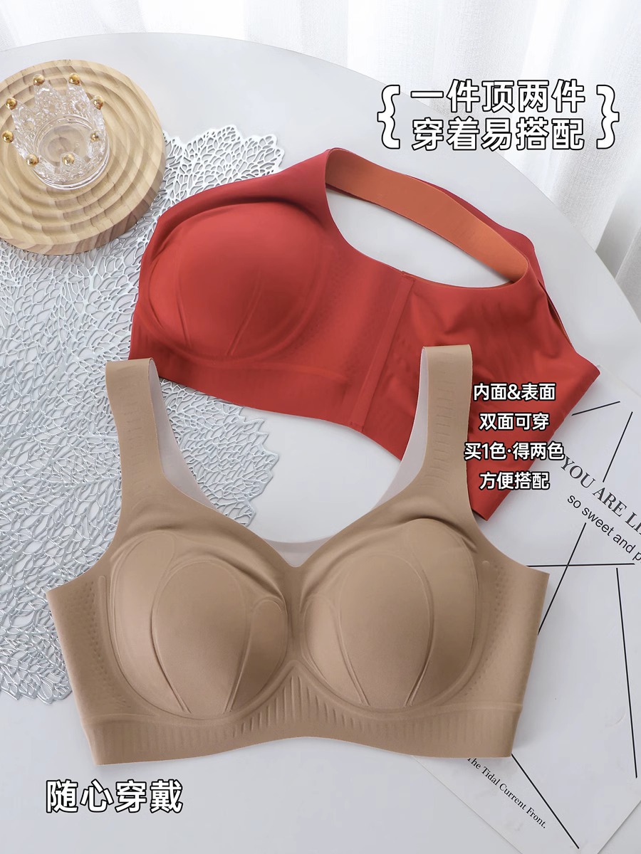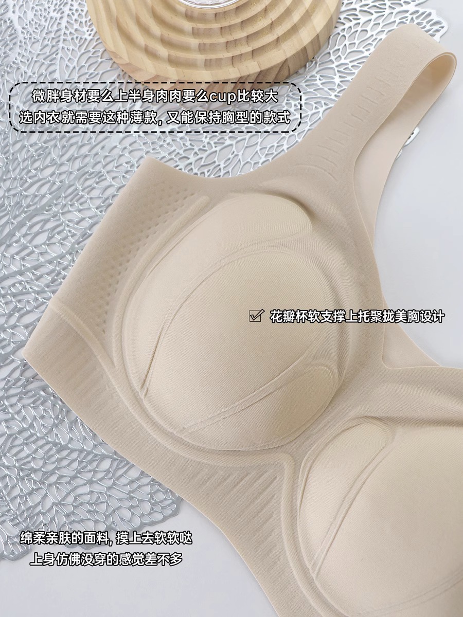超薄花瓣杯无痕内衣女大胸显小美背无钢圈收副乳防下垂背心式文胸