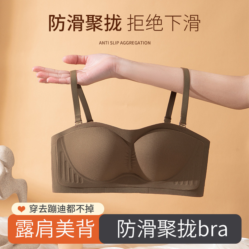 无肩带内衣女小胸防滑聚拢防走光裹胸提拉防下垂夏季透气无痕抹胸